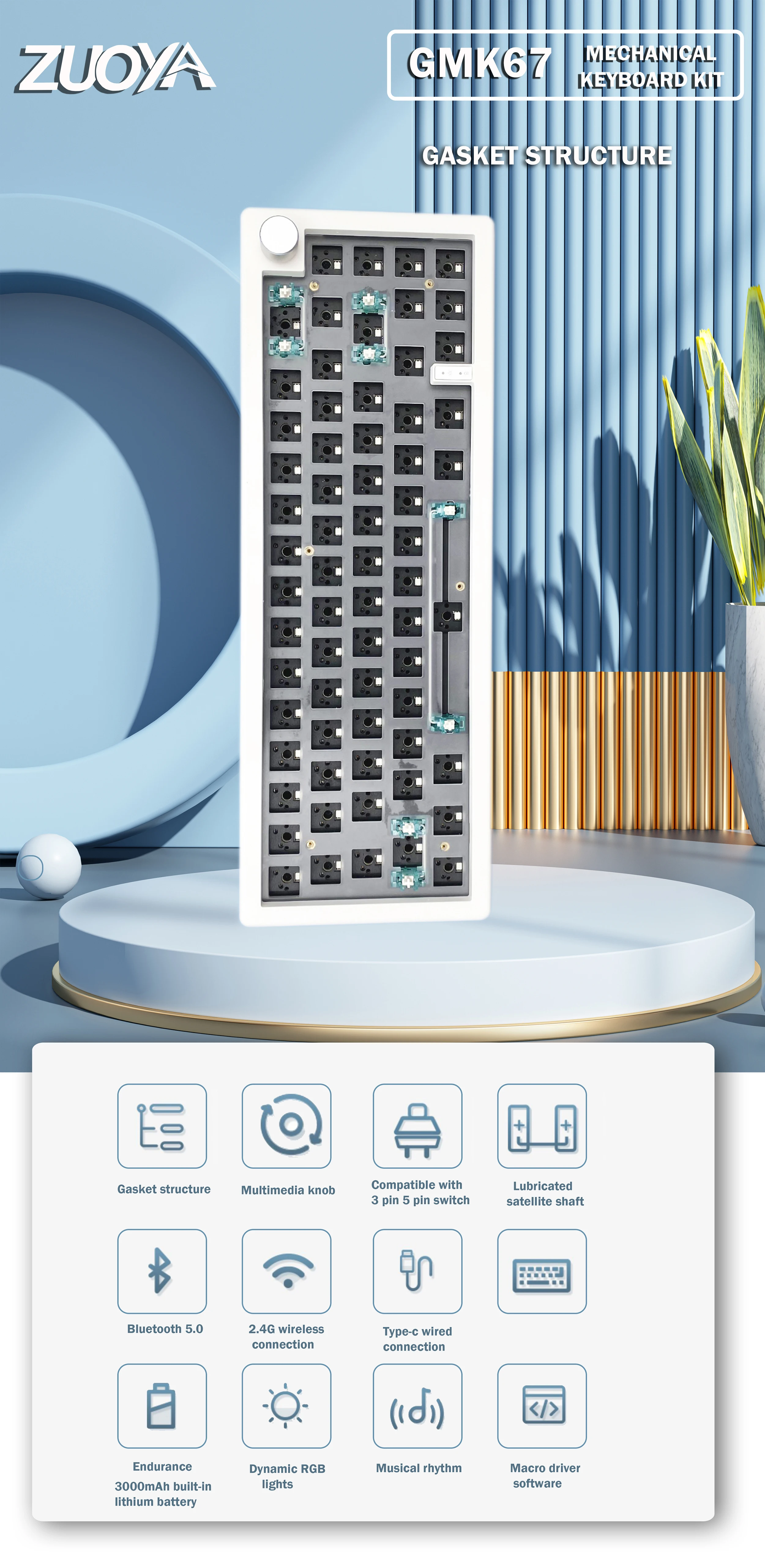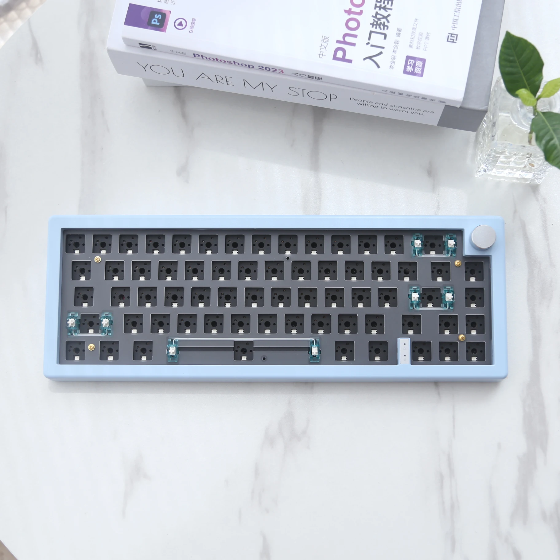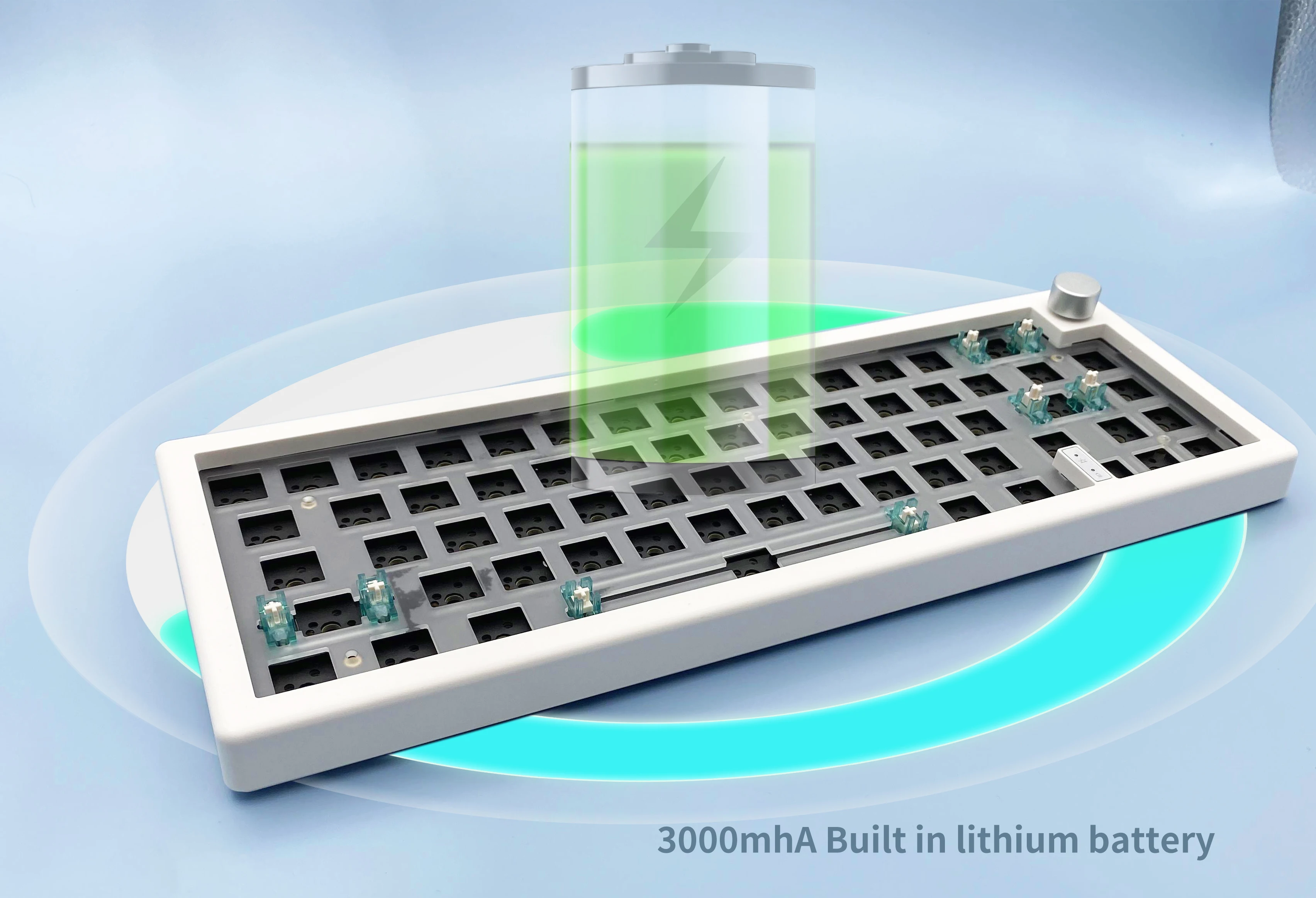 - > GMK67 65% Junta Bluetooth 2.4G Kit de teclado mecânico personalizado sem fio hot-swappable RGB retroiluminado