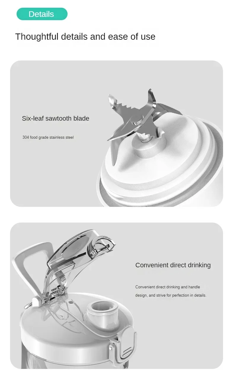 Grande capacidade portátil Juicer Cup, poderoso motor, rápido agitando misturador liquidificador, copo de mistura ao ar livre, 600ml, lâmina de 10 folhas, 4000mAh, novo