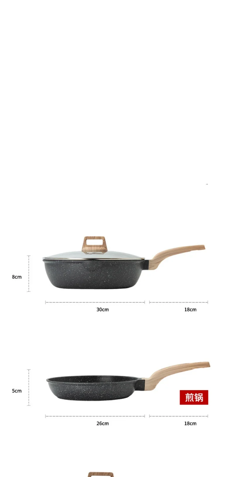 Versátil Cooking Set:8pcs conjunto de panelas de cozinha inclui 26cm frigideiras com tampa, 30cm Refogue panela com tampa, 24cm panela com tampa, 18cm Molho com tampa, para a sua cozinha diária