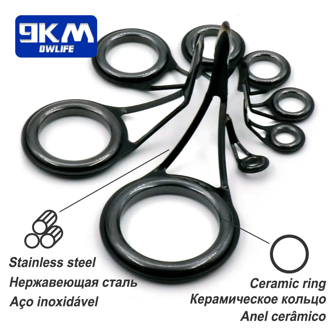 Dicas de pesca Guias de haste Kit de reparo de poste com estrutura de aço inoxidável e anel de cerâmica resistente ao desgaste, resistente e durável.