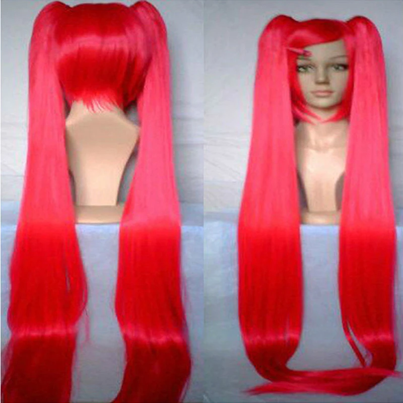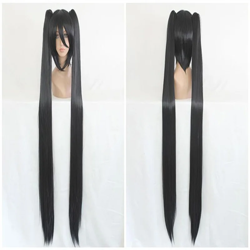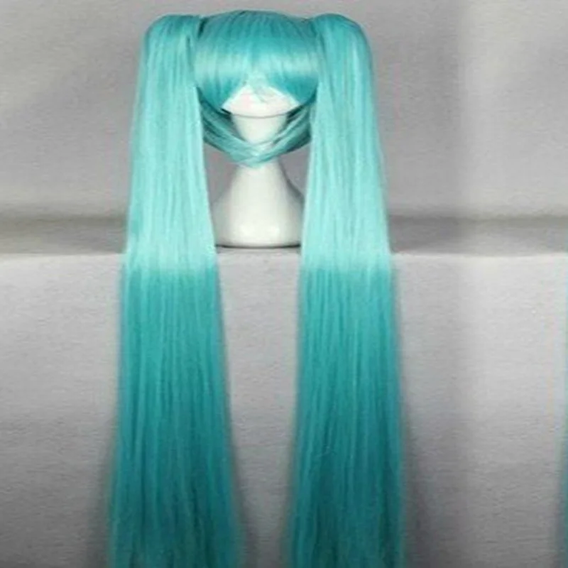 Haircoy cabelo sintético longo em linha reta verde peruca cosplay com 2 clipes em rabos de cavalo vocaloid hatsune miku peruca traje2. Parece muito com cabelo e couro cabeludo humanos, realistas em cada detalhe;
