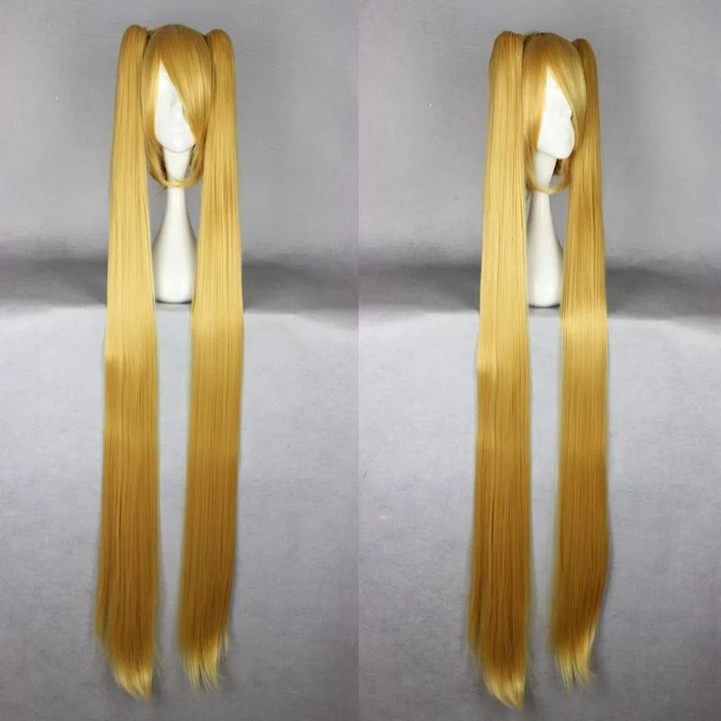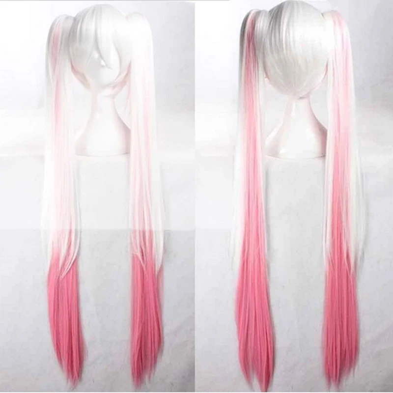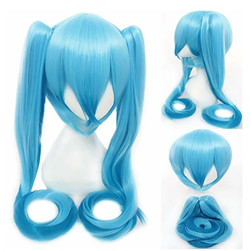 Hairjoy cabelo sintético longo reto verde peruca cosplay com 2 clipes em rabos de cavalo vocaloid hatsune miku traje peruca