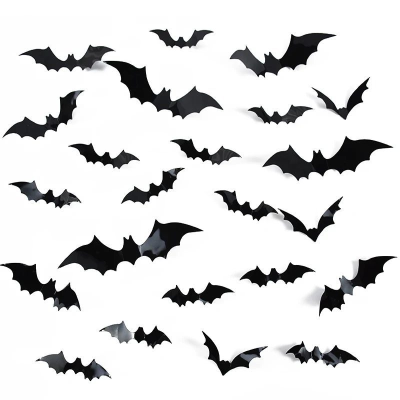 - > Halloween 3d morcego preto adesivos de parede para casa quarto decoração interior adereços assustadores crianças festa favores decalques parede janela adesivo