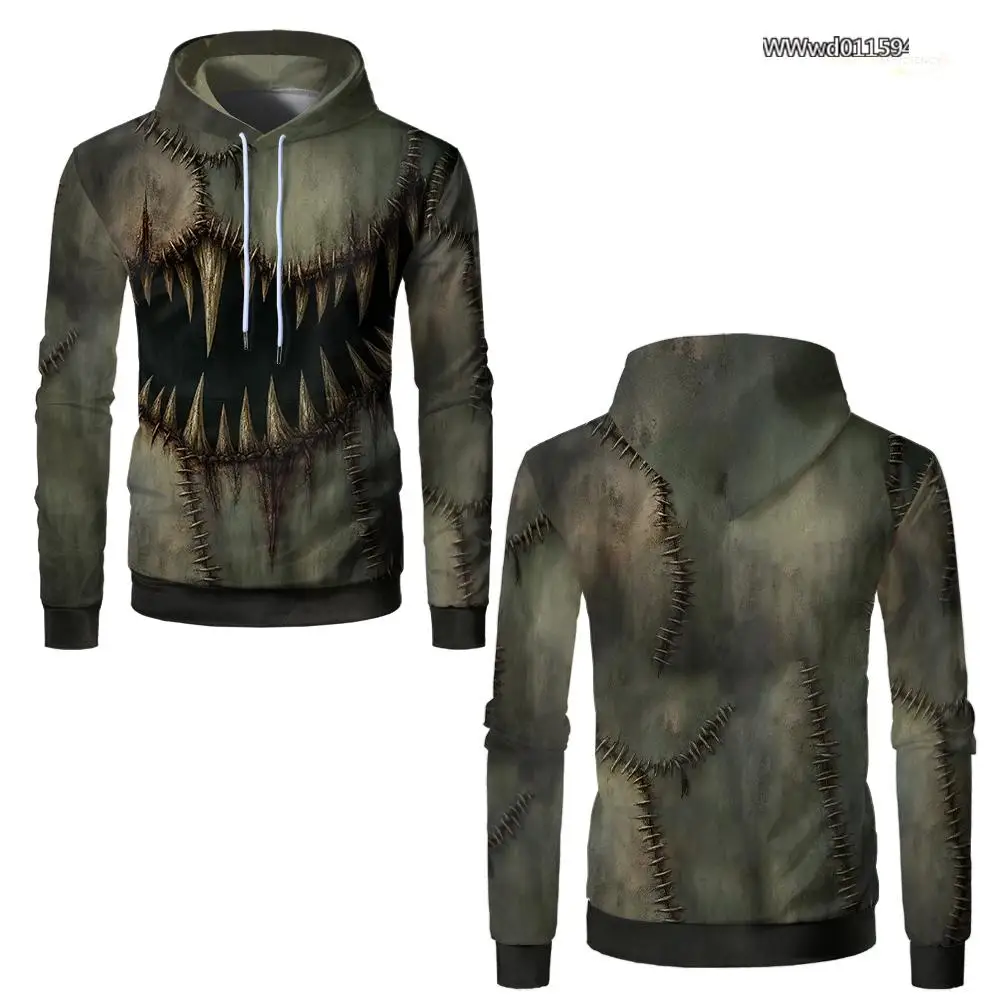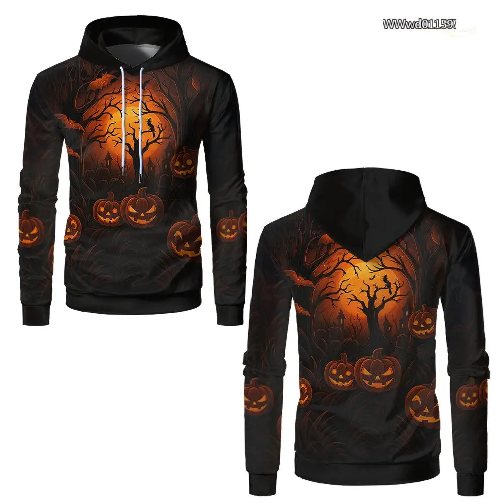Halloween horror abóbora impressão gráfica hoodie 3d aranha rasgado impressão moletom festa de férias unisex roupas de moda de rua