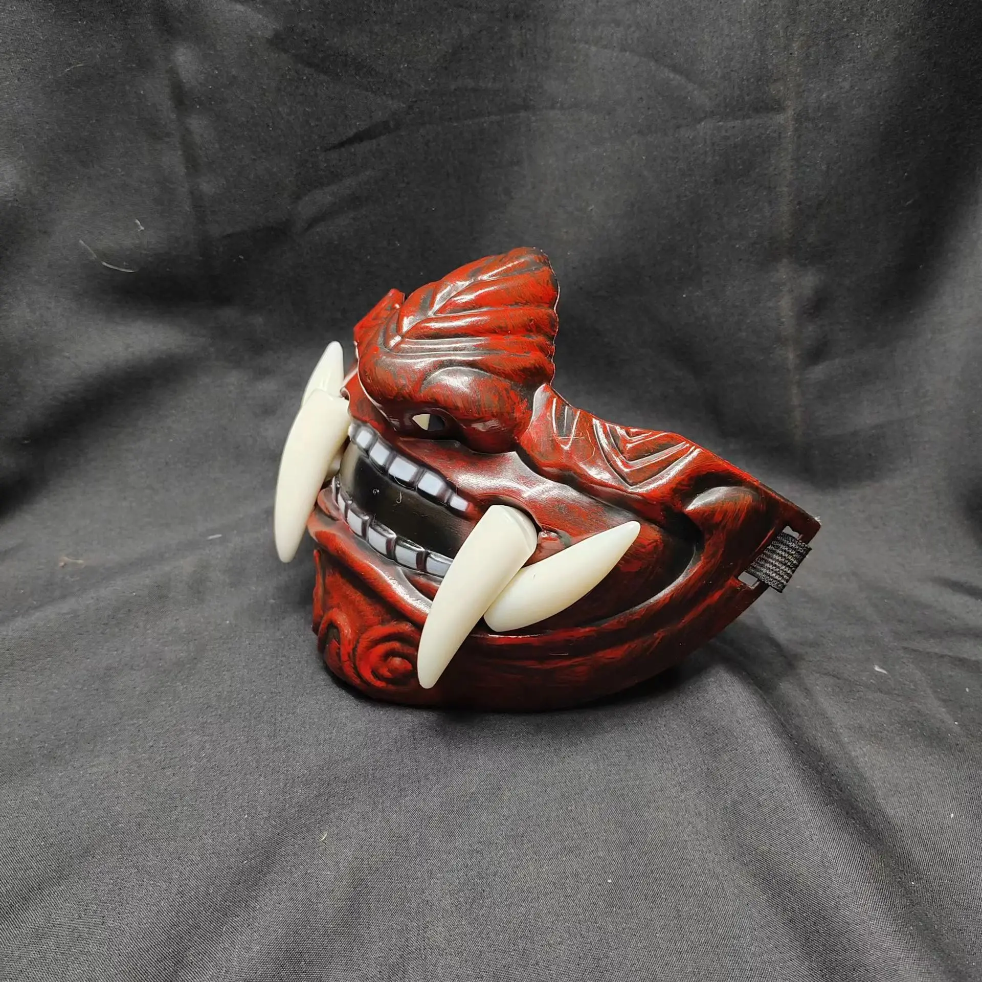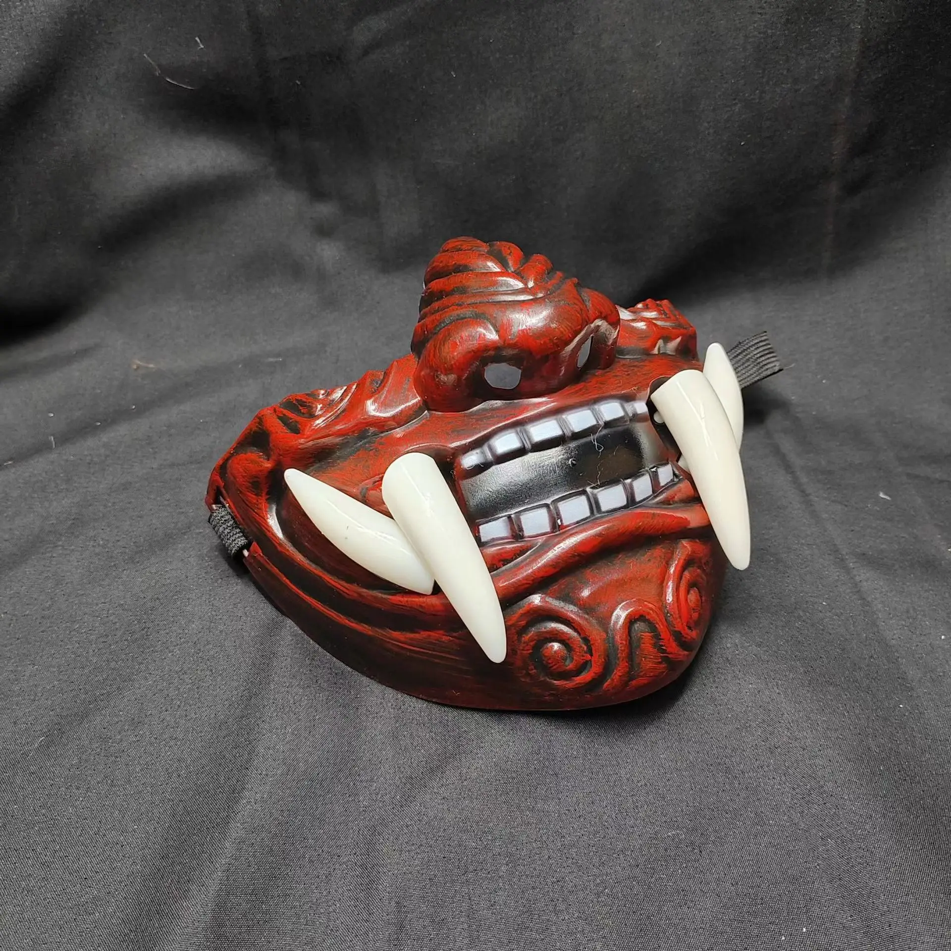 A capa facial 3D com presas brancas tem o significado de procurar o bem e evitar o mal efantasmas assustadores no Japão.