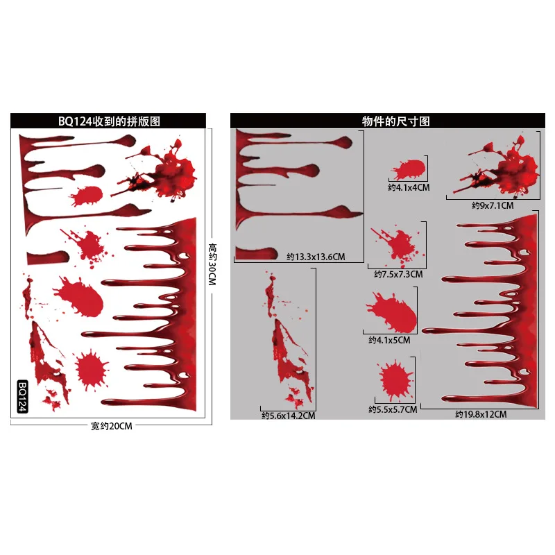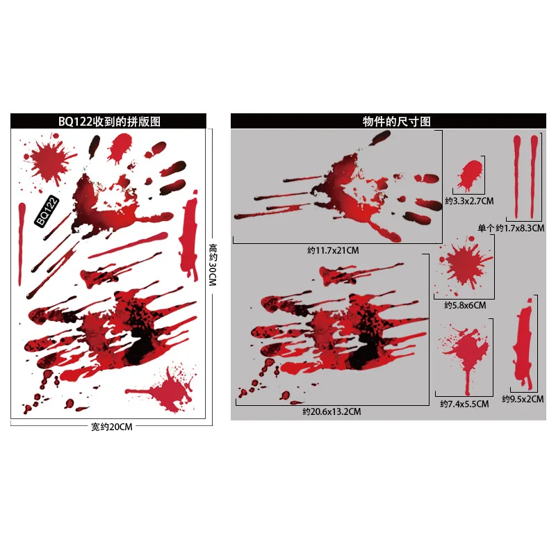 Halloween Mall Janela Ghostly Horror Adesivos, Decoração De Festa De Férias, Impressões De Sangue, Decoração De Quarto Eletrostática