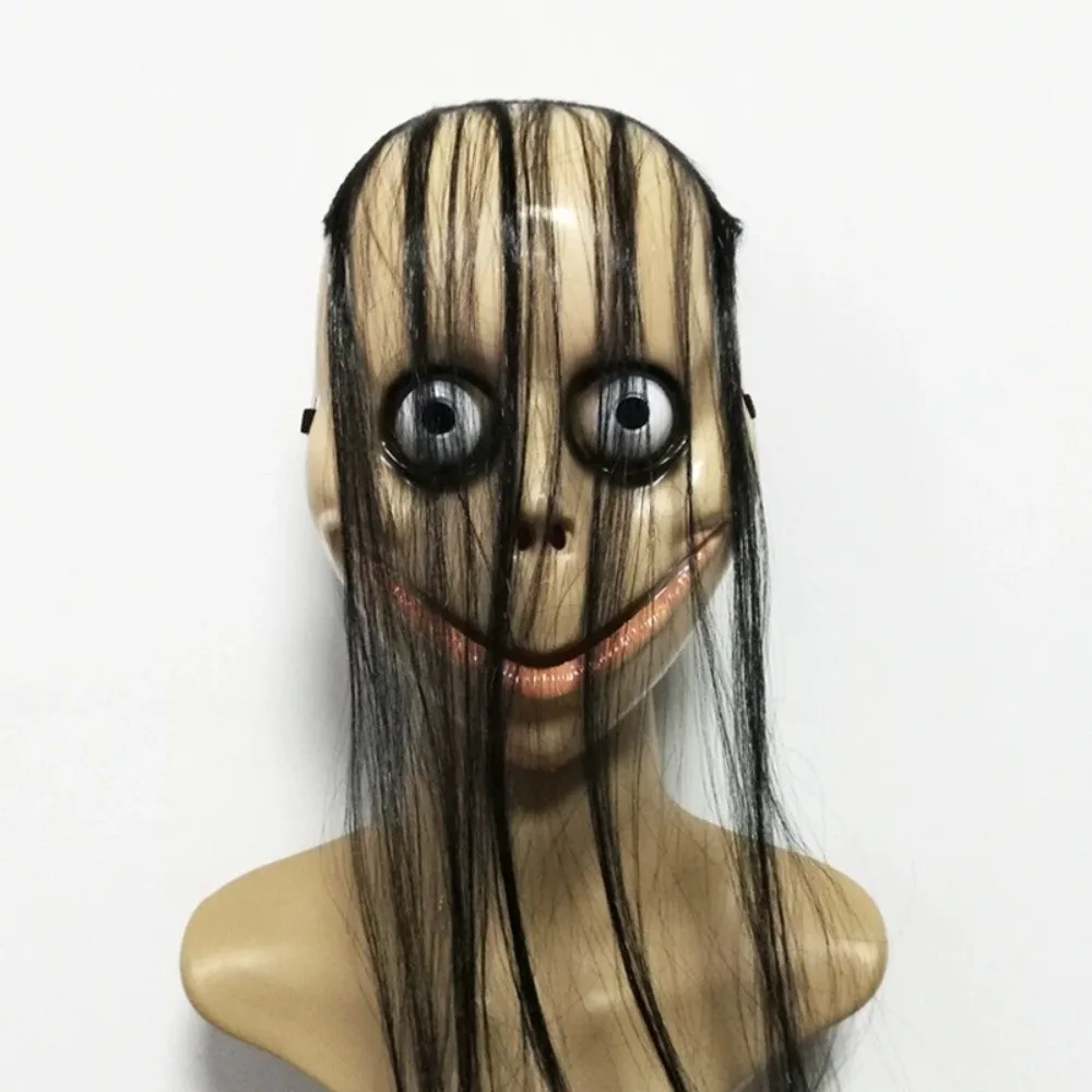Halloween mo mo máscara com cabelo longo olhos grandes máscara engraçada horror fantasma festa traje adereços em forma de v máscara de boca halloween cosplay