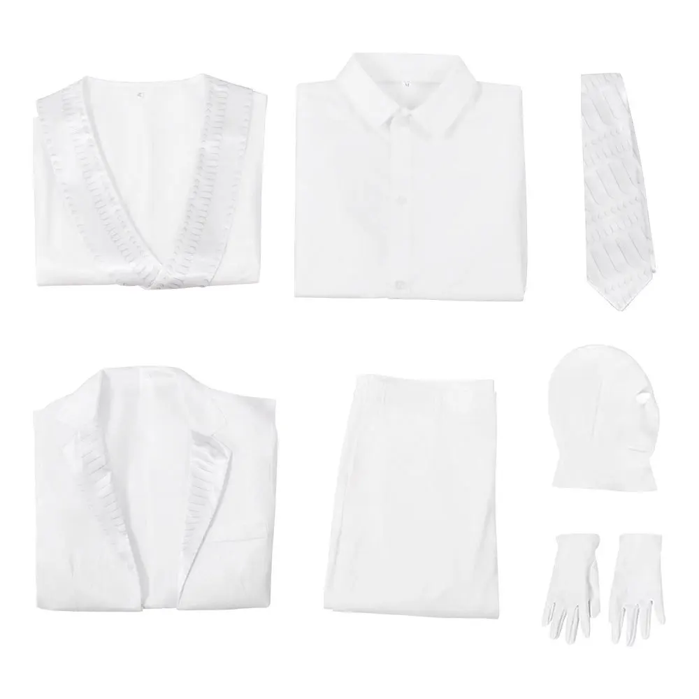 Halloween Moon Cosplay para homens, filme de super-herói, gravata branca, colete, terno, chapelaria, conjuntos de máscaras, carnaval, traje de máscaras, senhor cavaleiro