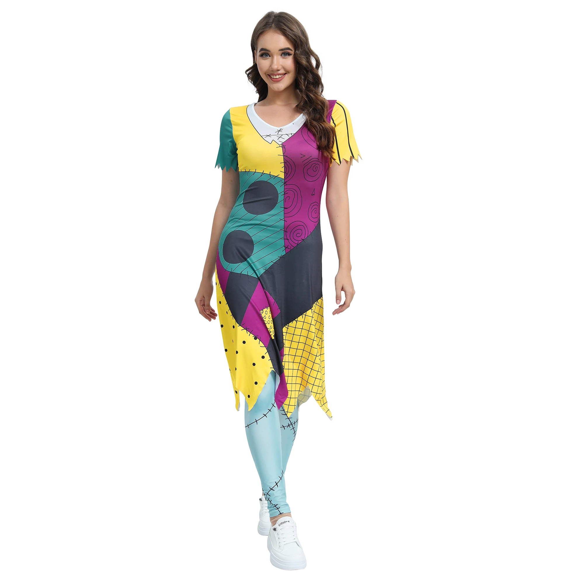 Halloween o pesadelo cosplay antes do natal sally traje zumbi impressão vestido de festa roupas leggings conjuntos desempenho palco