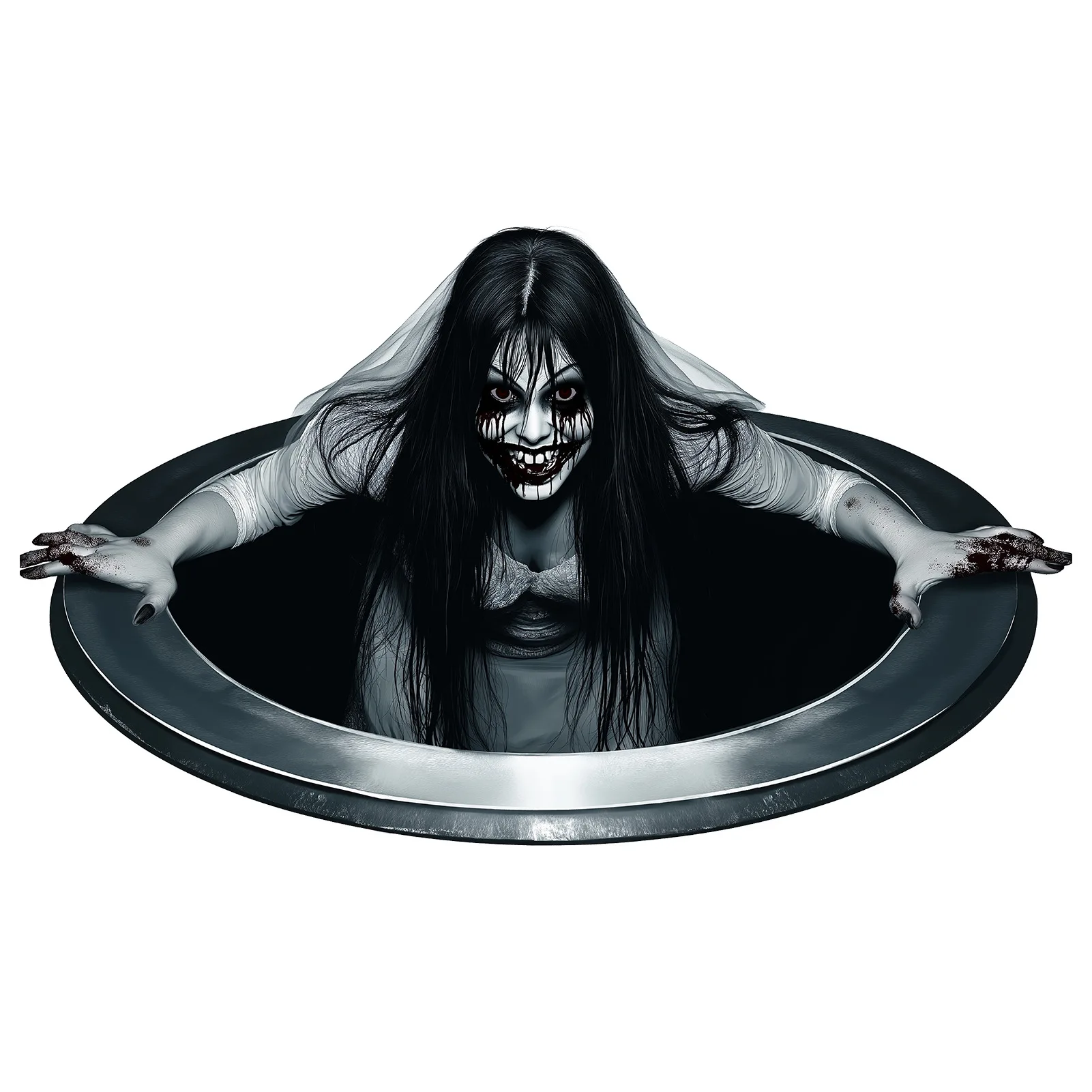 - > Halloween parede piso adesivos horror assustador terror cabelo longo fantasma menina janela adesivo quarto sala de estar festa decoração casa adereços