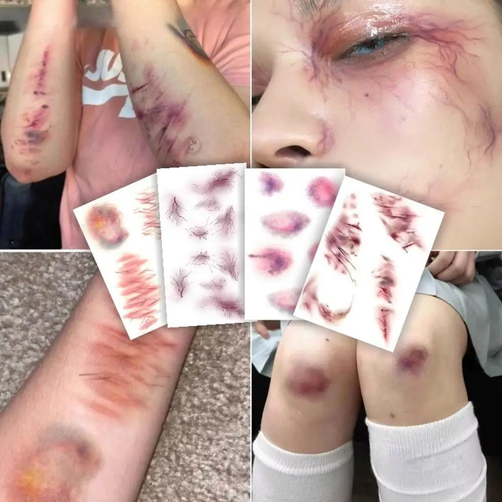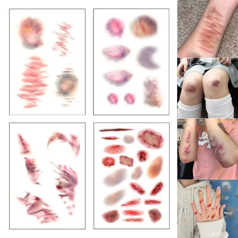 - > Halloween tatuagem adesivos horror ferida lesão no sangue falso costilha cicatriz duradoura tatuagem falsa braço arte adesivo diy decorações de festa