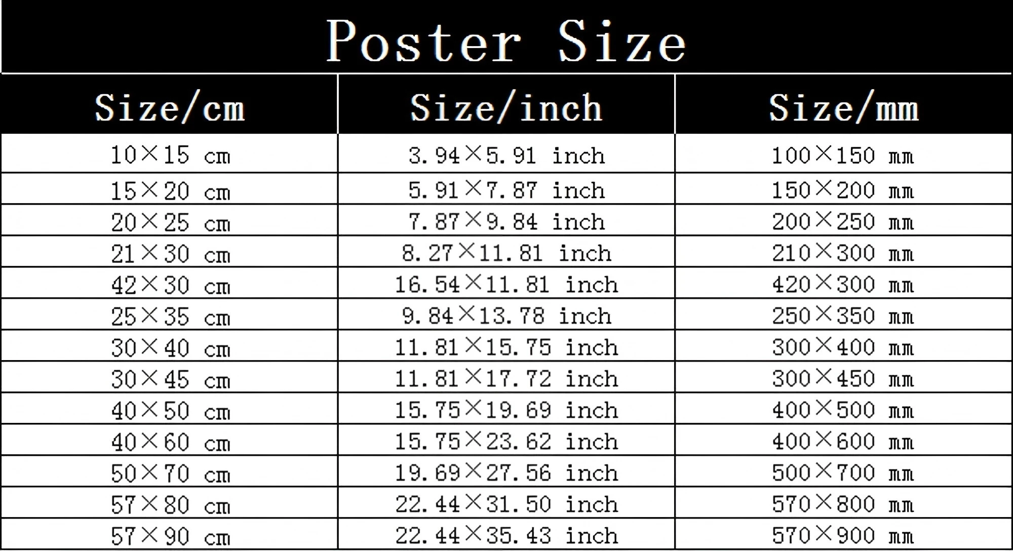 3. O pôster será embalado em formato cilíndrico para evitar recuos, coloque o pôster lado a lado por alguns minutos, se você tiver alguma dúvida, entre em contato conosco primeiro.