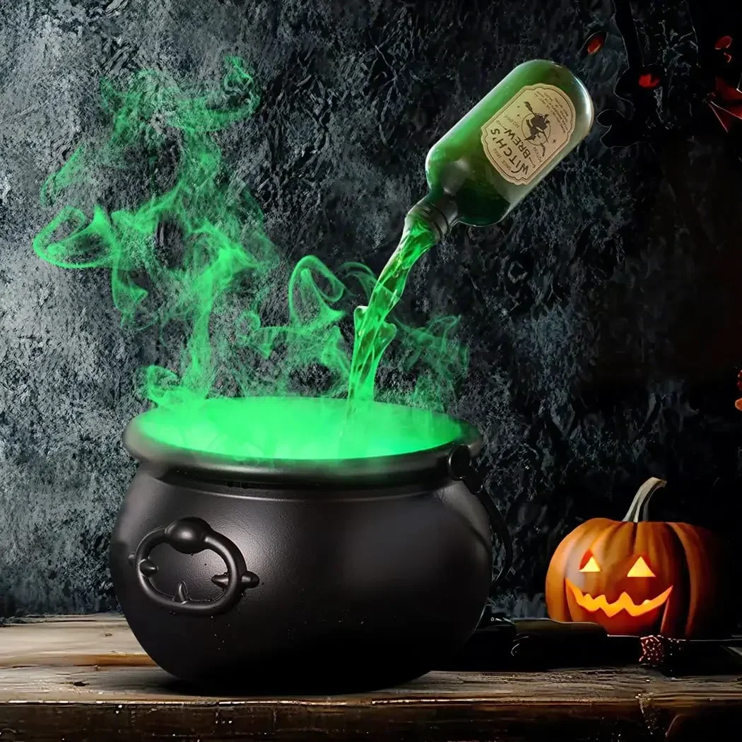 【Caldre de poção flutuante premium】Uma garrafa de poção parece flutuar acima do caldeirão.Tubos estabilizadores ocultos prendem-no enquanto borrifam respingos nas bordas, criando decorações encantadoras de Halloween com uma atmosfera assustadora.