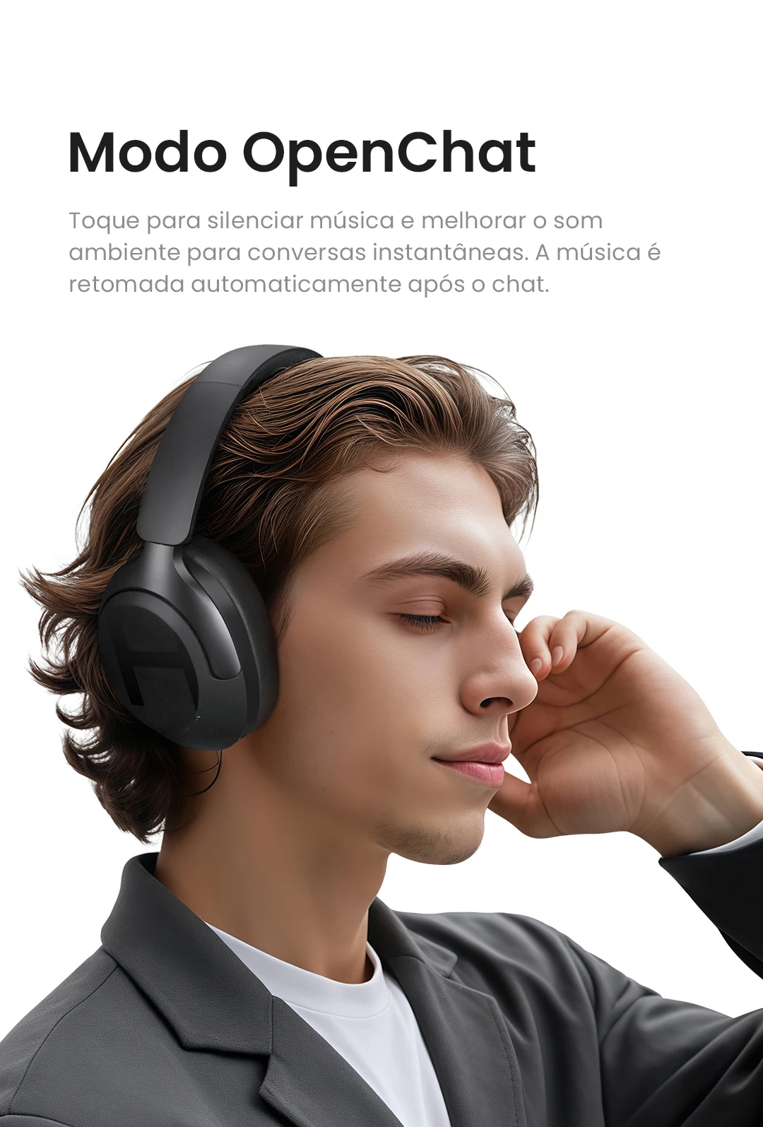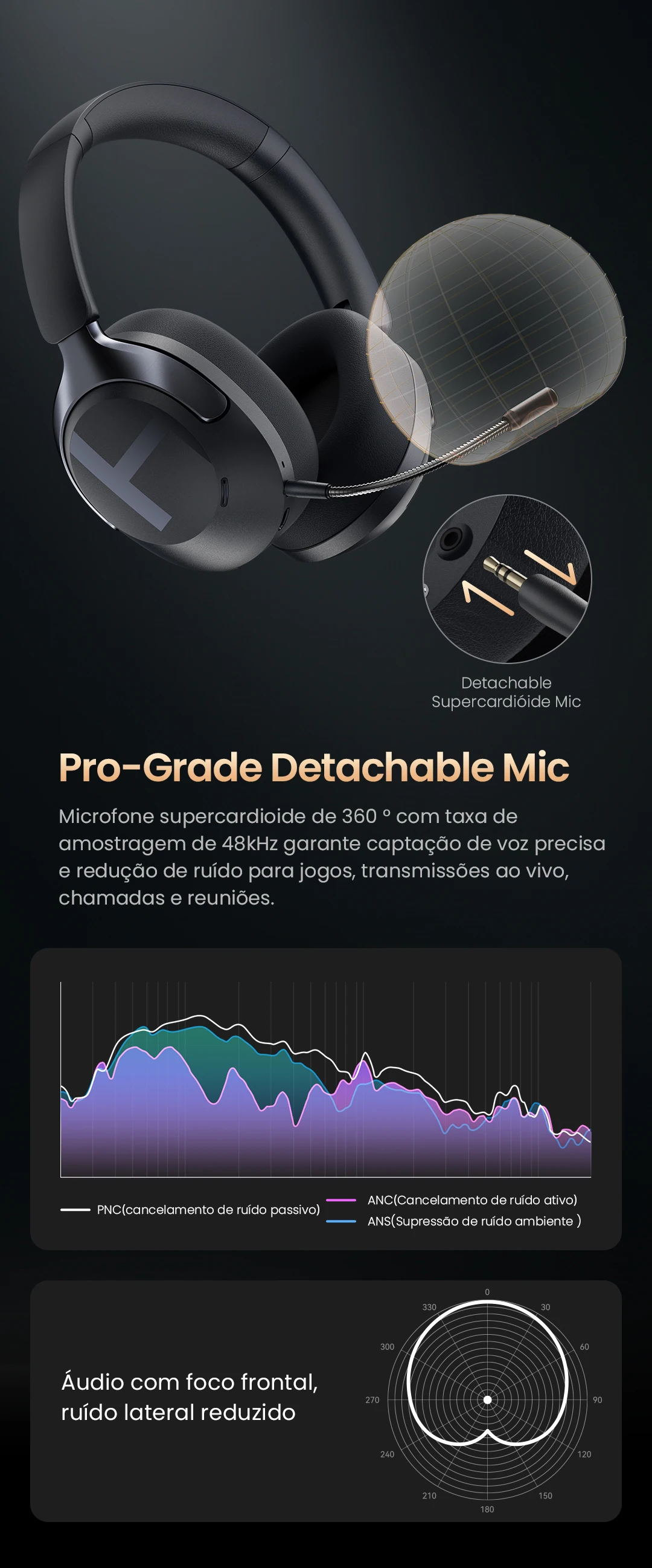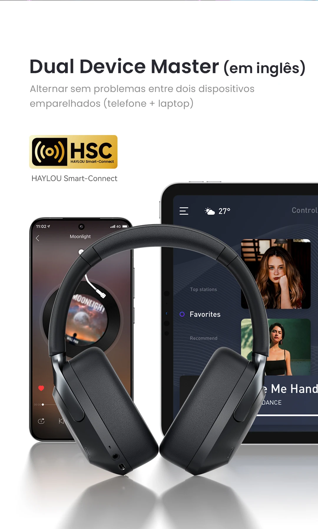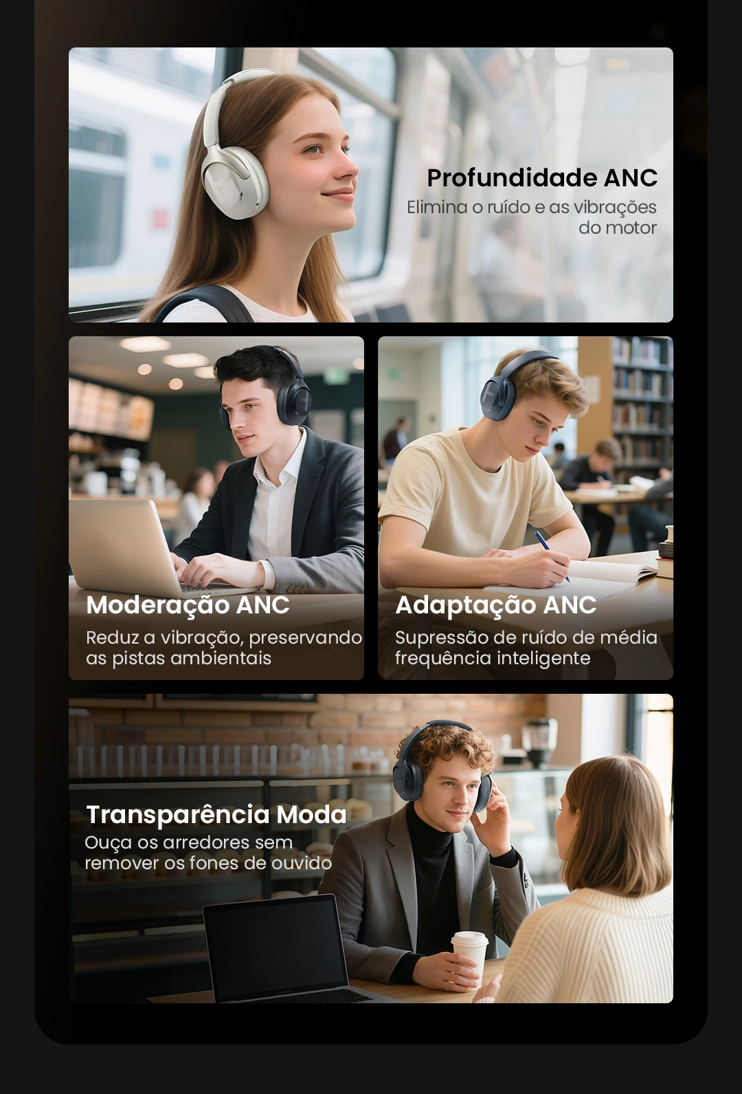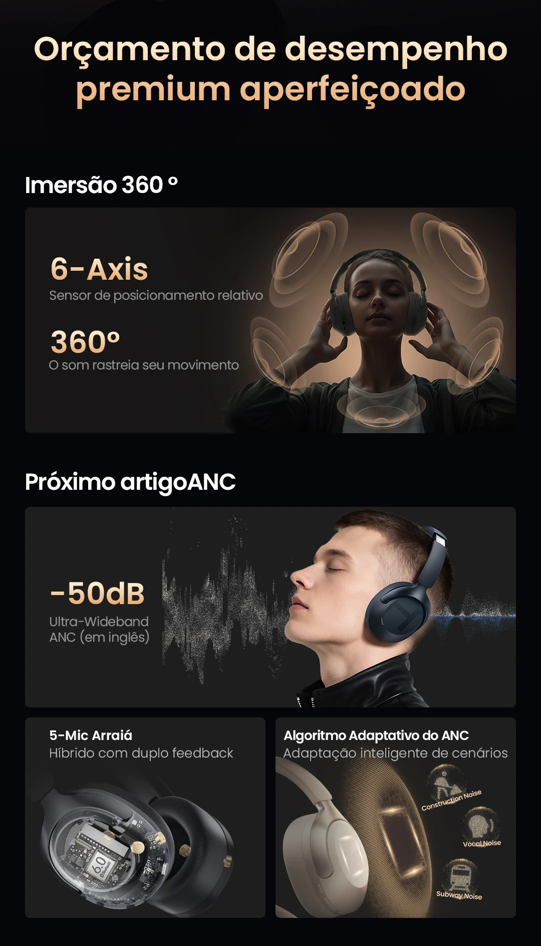 HAYLOU S40 ANC Fone de ouvido sem fio 50dB com cancelamento de ruído alta resolução 360° Fone de ouvido de áudio espacial com fone de ouvido LDAC Bluetooth 6.0 com duração de reprodução de 90H