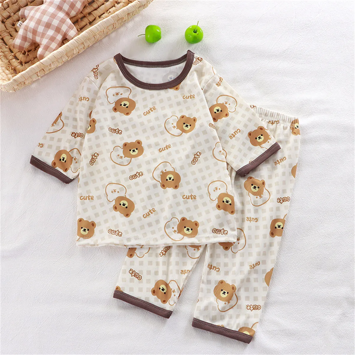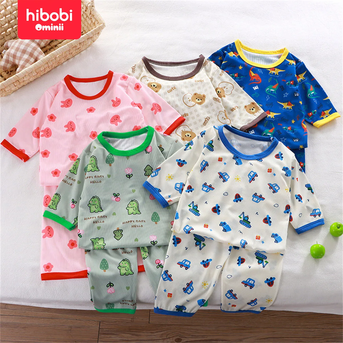 - > Hibobi-Conjunto infantil de roupas íntimas de manga 3/4, pijama do bebê, roupas de ar condicionado, roupas de verão, treino, 2 peças