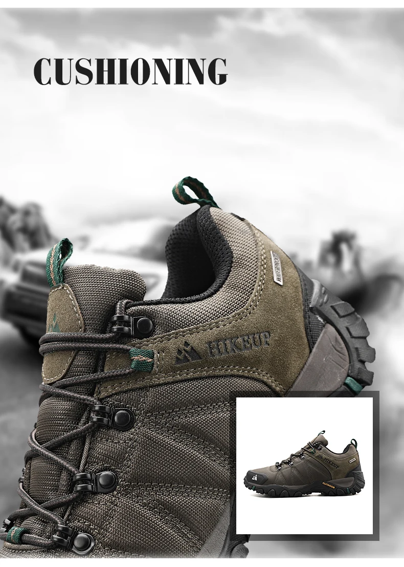 - > Hikeup antiderrapante homem caminhadas sapatos respirável ao ar livre resistente à respingo escalada tênis turismo sapatos de montanha