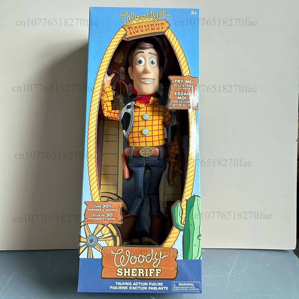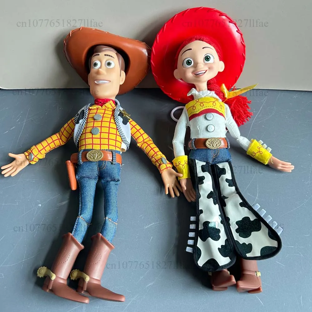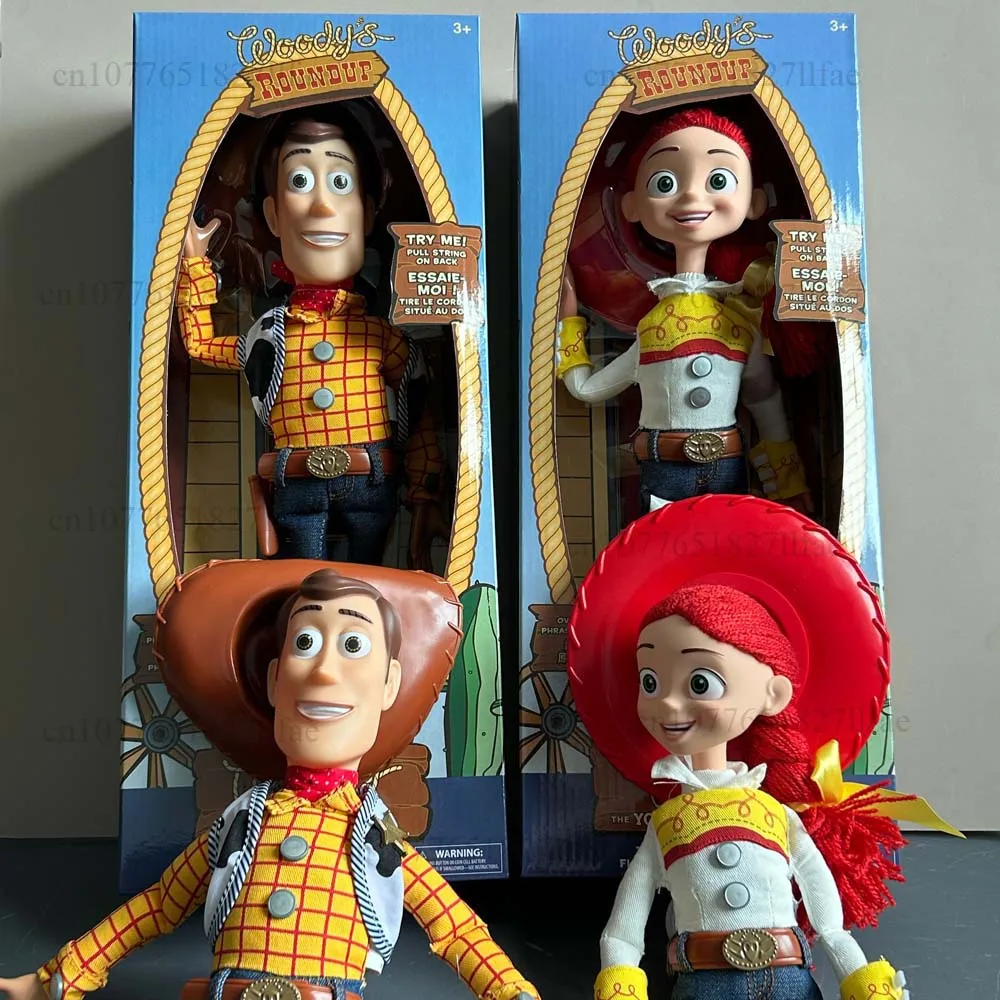 - > História 3 4 falando woody jessie buzz figuras de ação pano real corpo boneca modelo brinquedos voz boneca coleção ornamento mesa