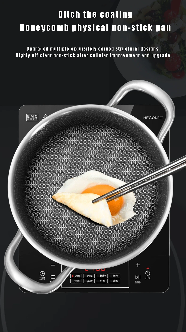 Honeycomb Bottom Non Stick Pan, Fogão de Indução Fogão a Gás Frigideira, Aço Inoxidável 316, Panela de sopa, Frigideira Wok, Frigideira Geral, 28 cm, 30cm