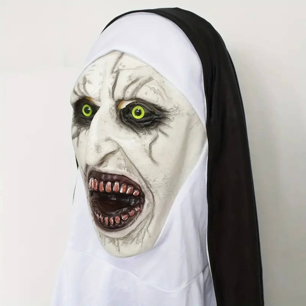 - > Horror a freira máscara cosplay assustador demônio sangrento fantasma rosto máscaras de látex com lenço festa de halloween traje adereços deluxe