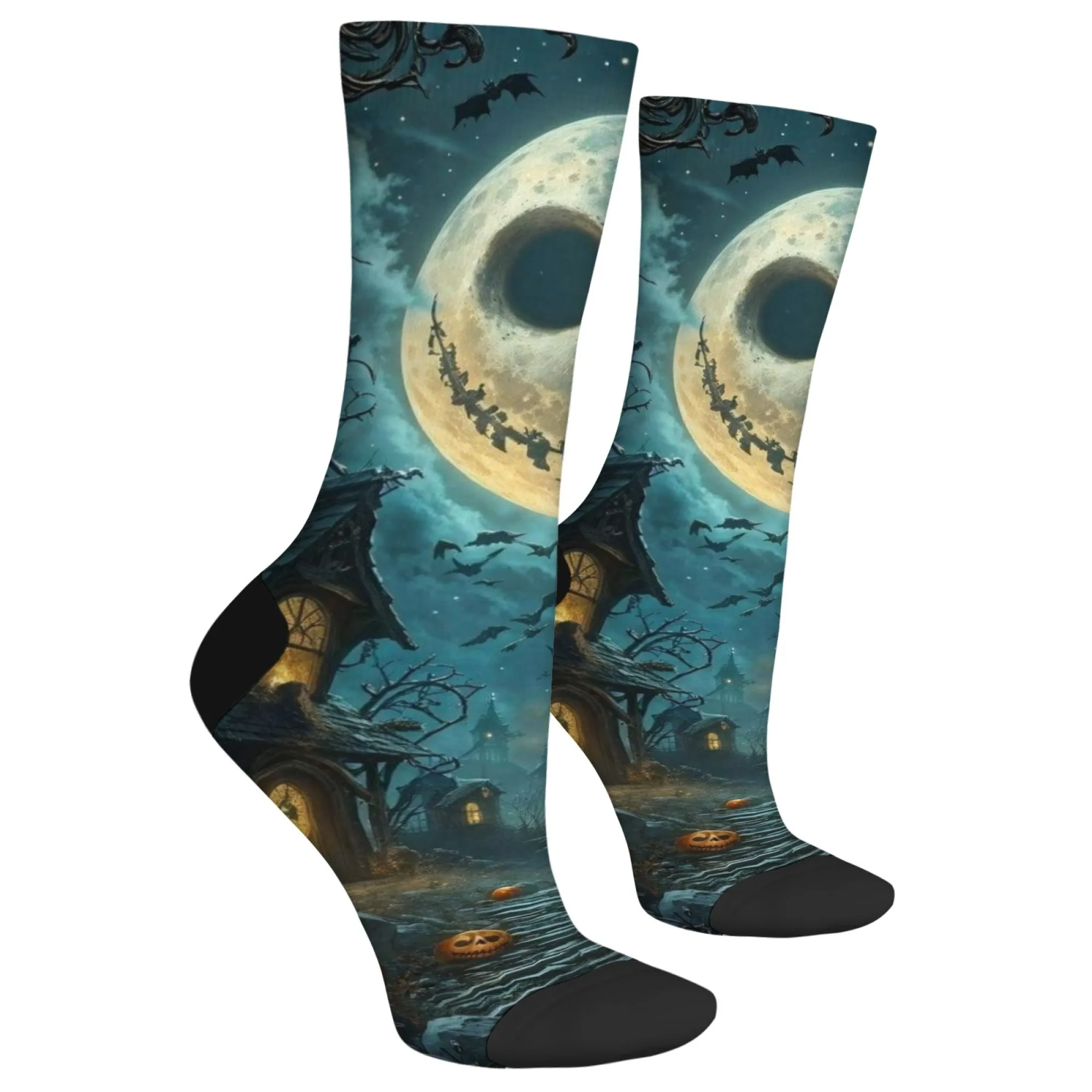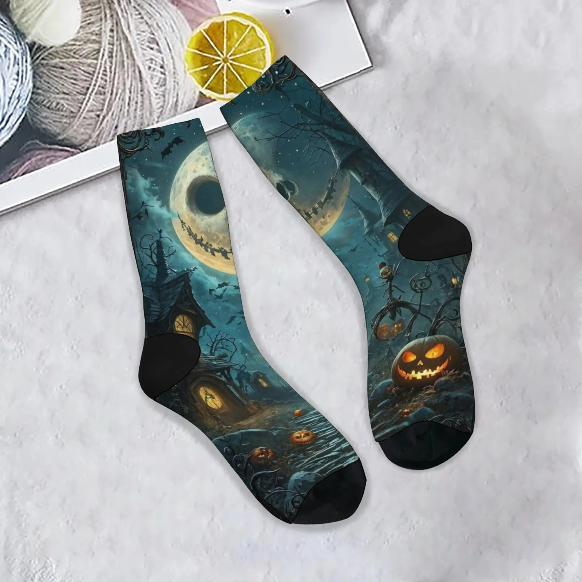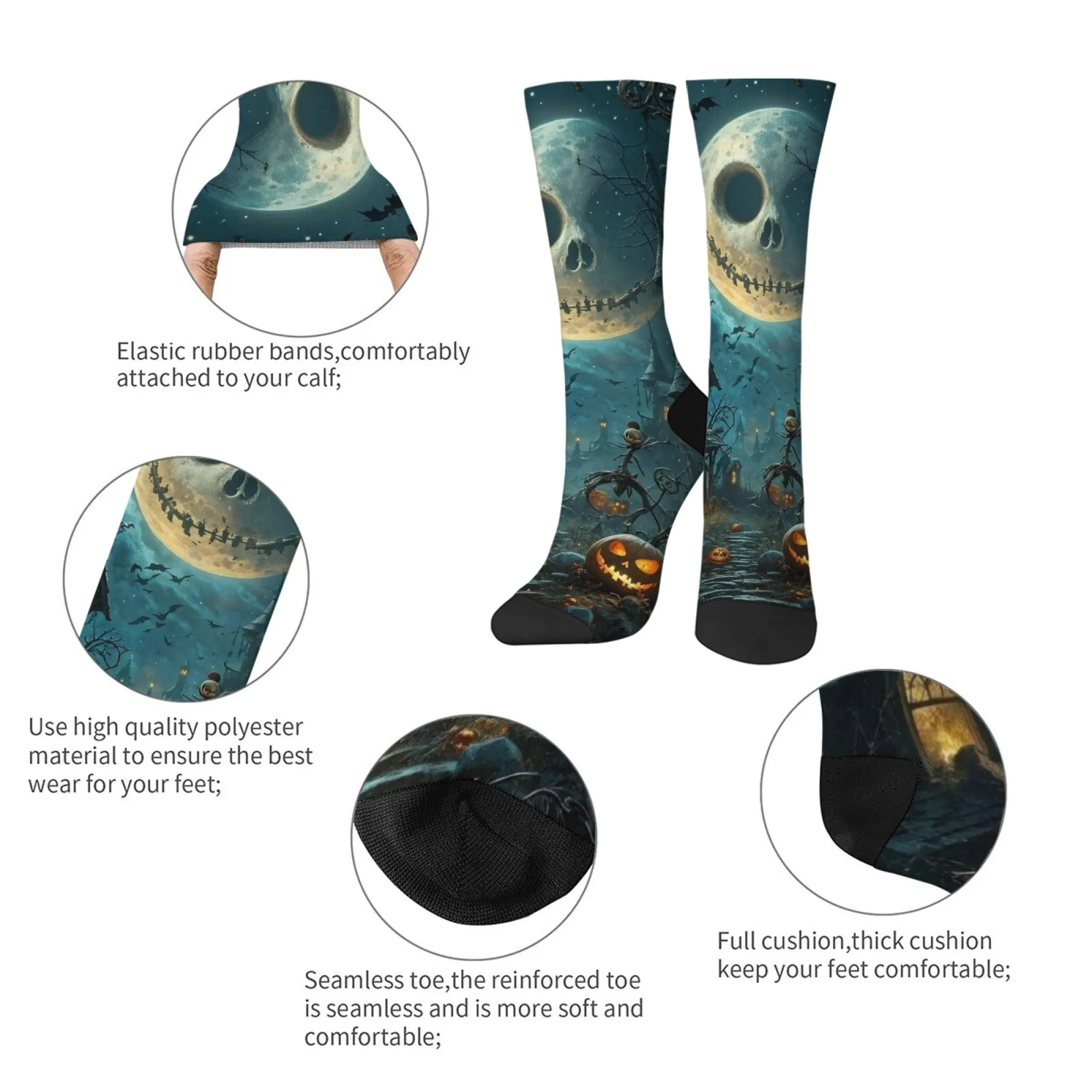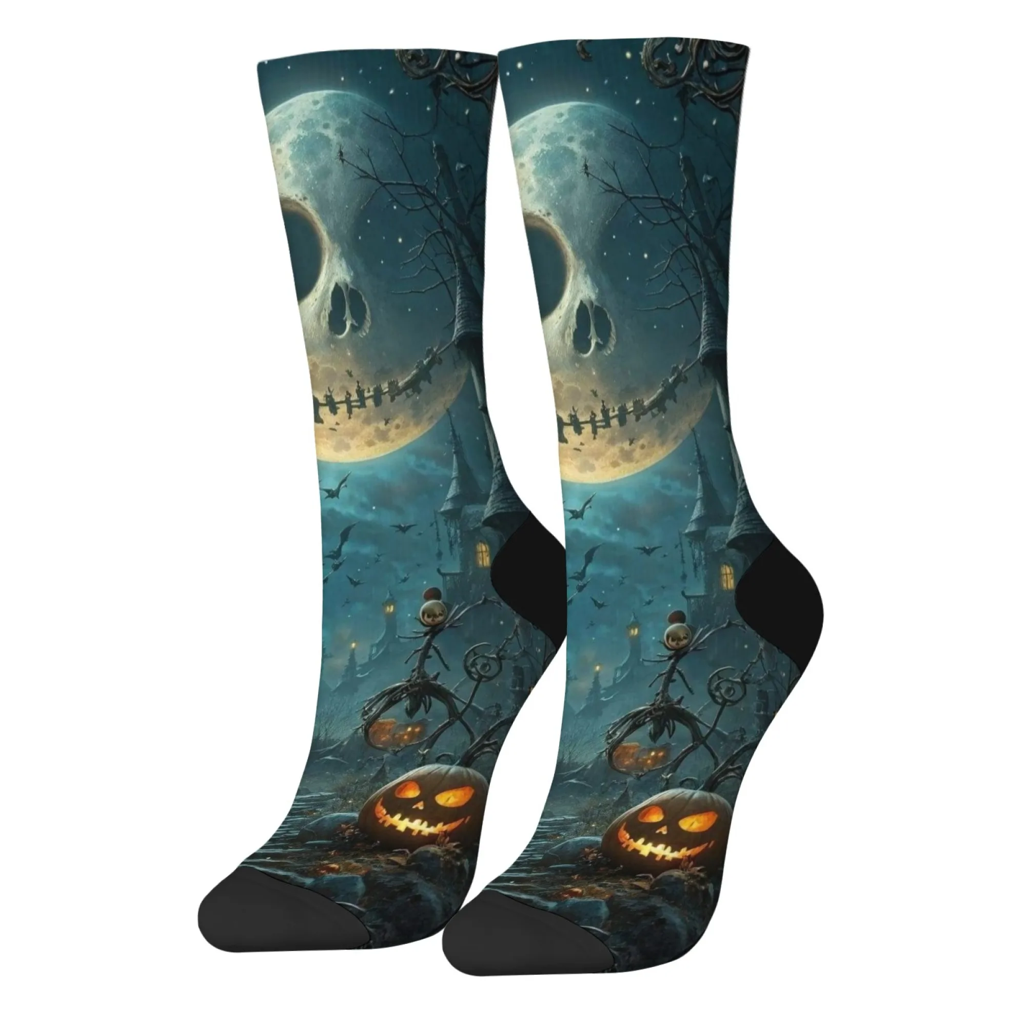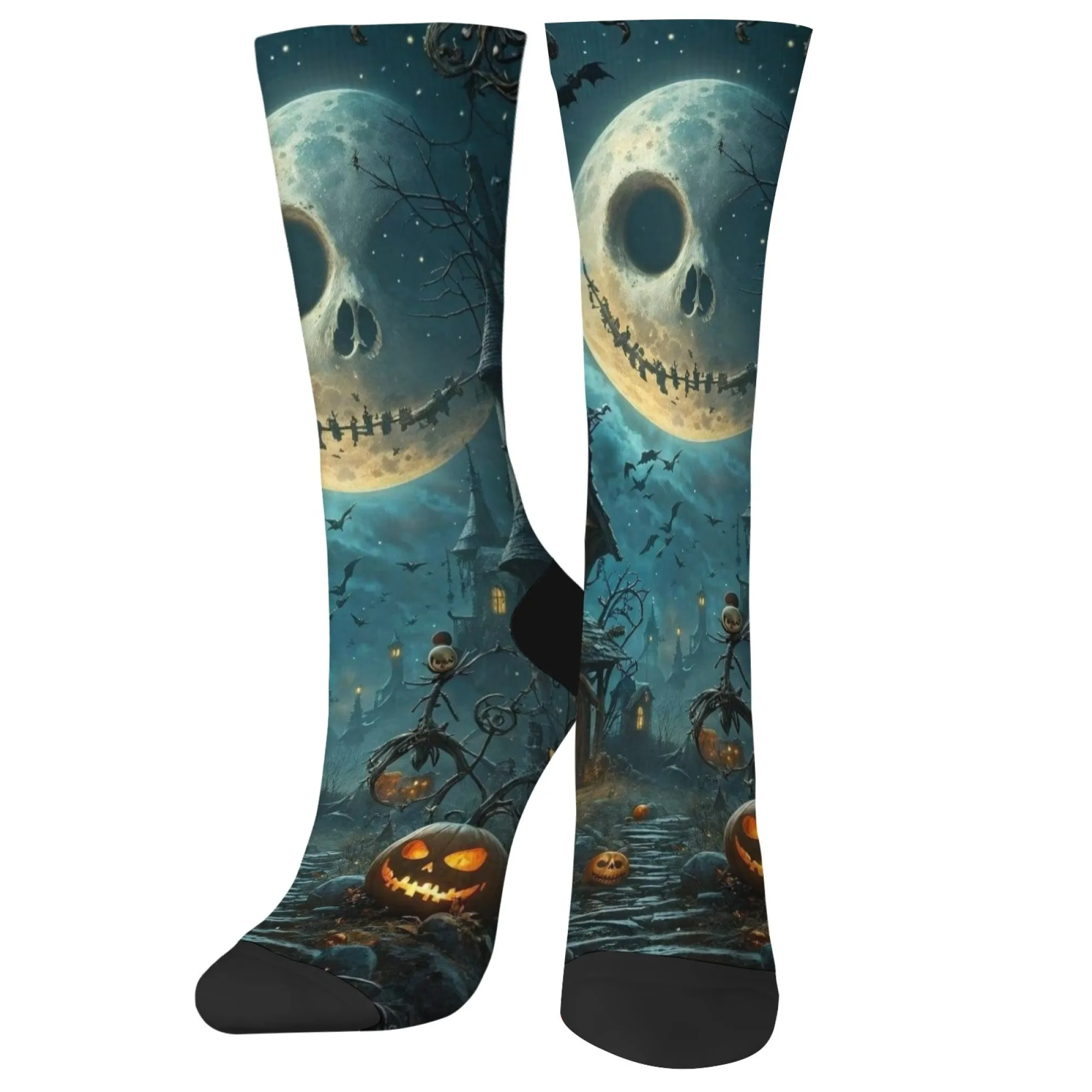 Horror lua abóbora impressão tripulação meias novidade harajuku tendência de rua engraçado hip hop meias de compressão unisex festa presente de halloween