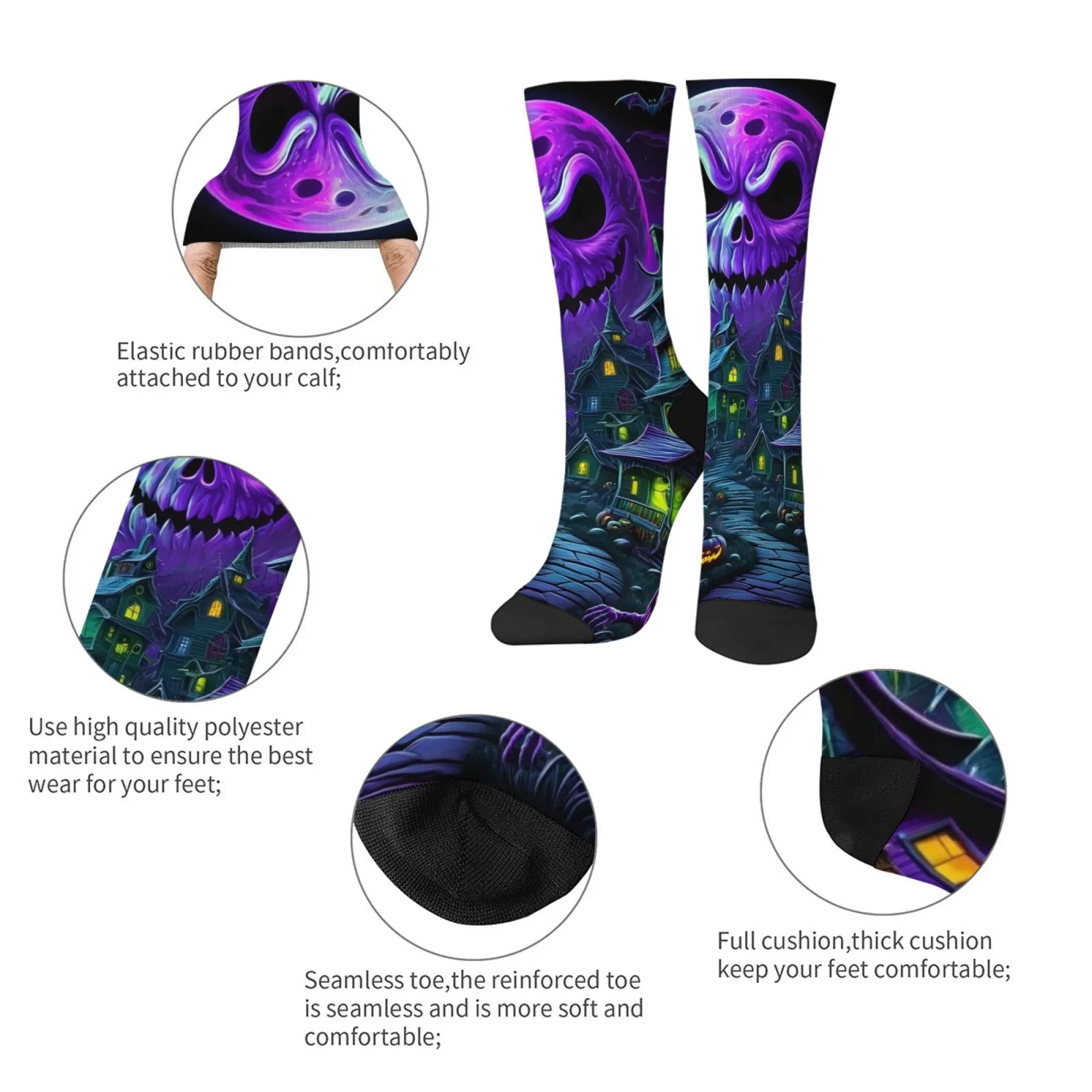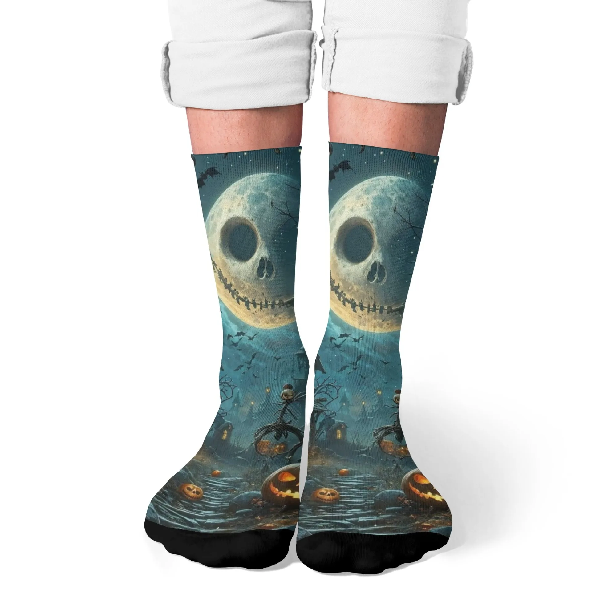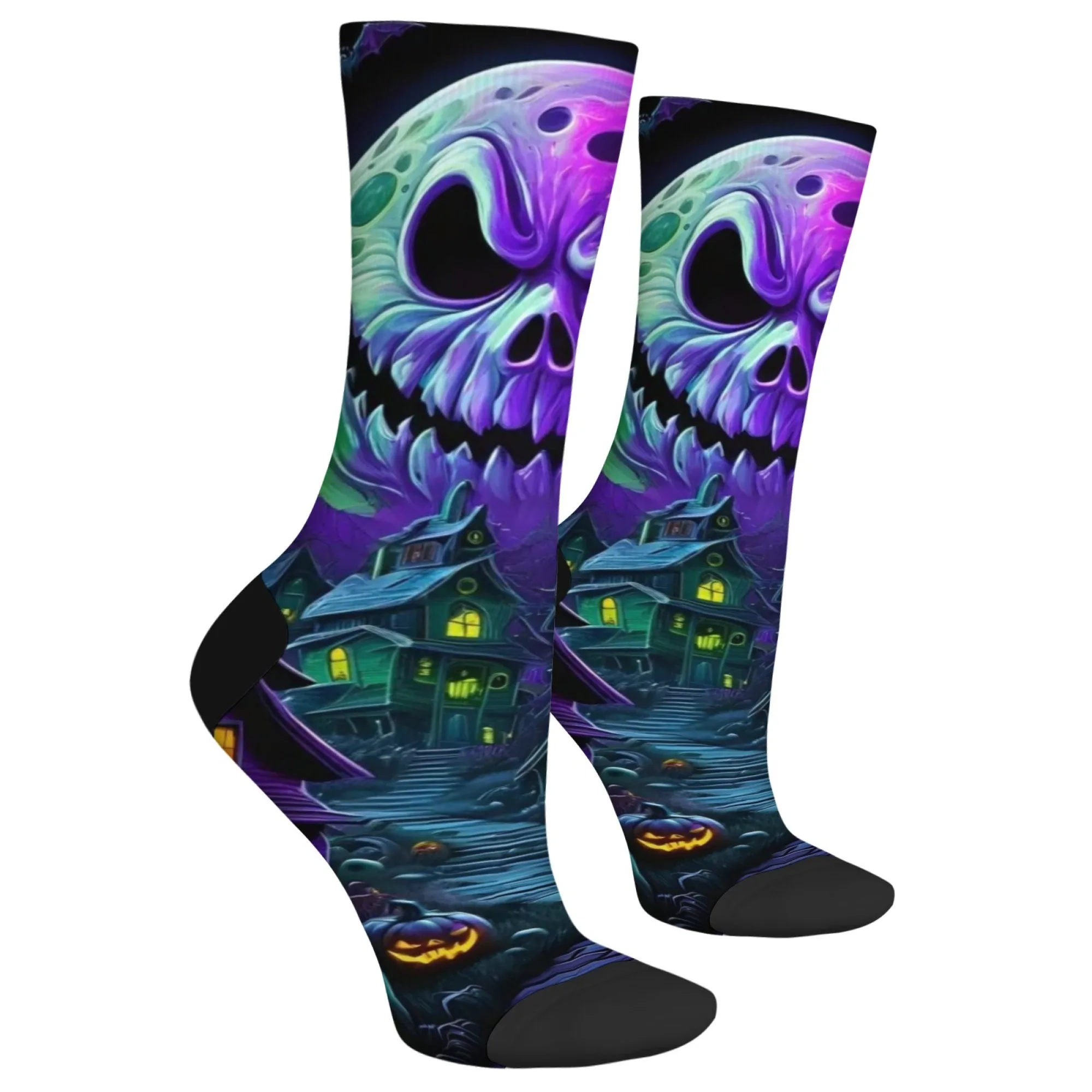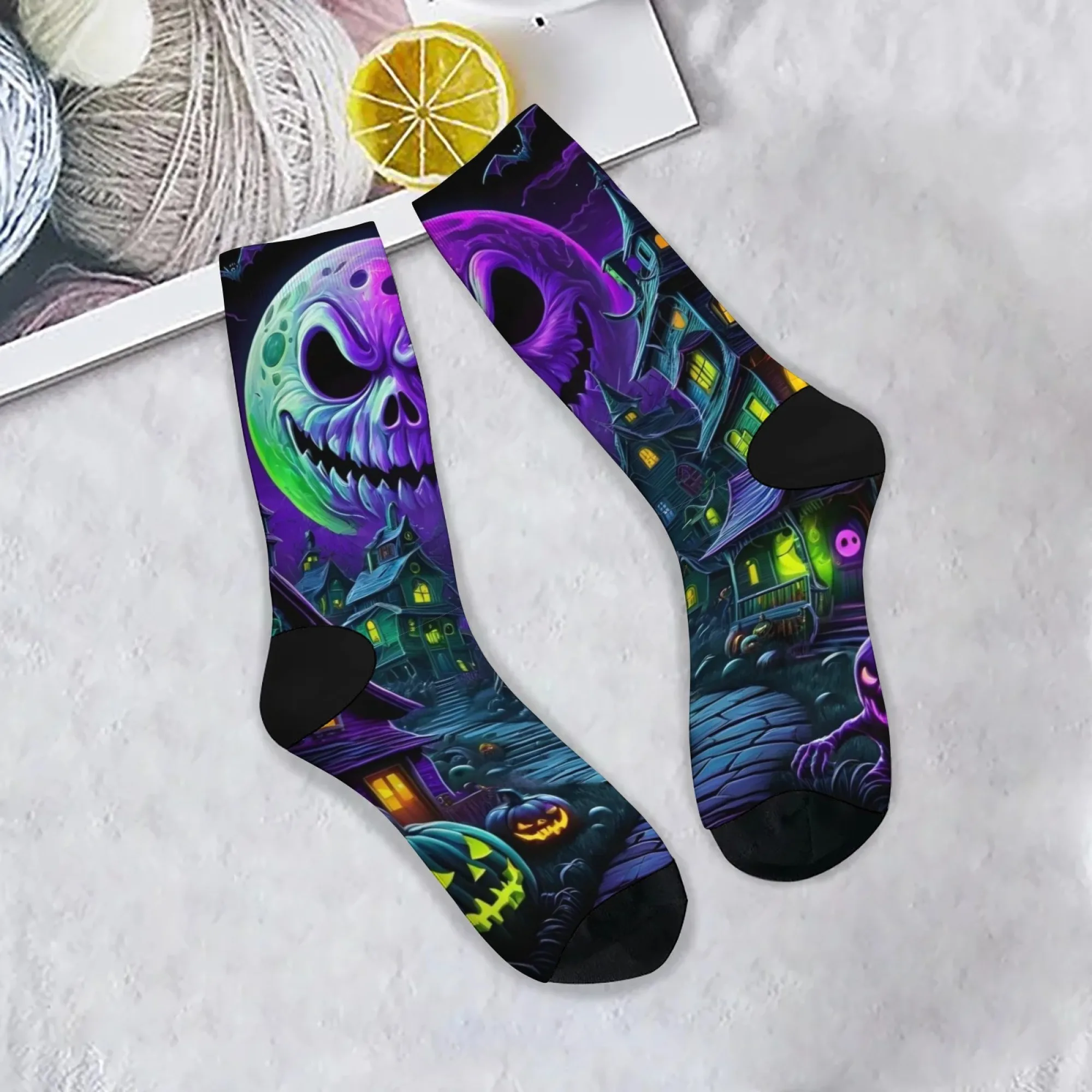 Horror lua abóbora impressão tripulação meias novidade harajuku tendência de rua engraçado hip hop meias de compressão unisex festa presente de halloween
