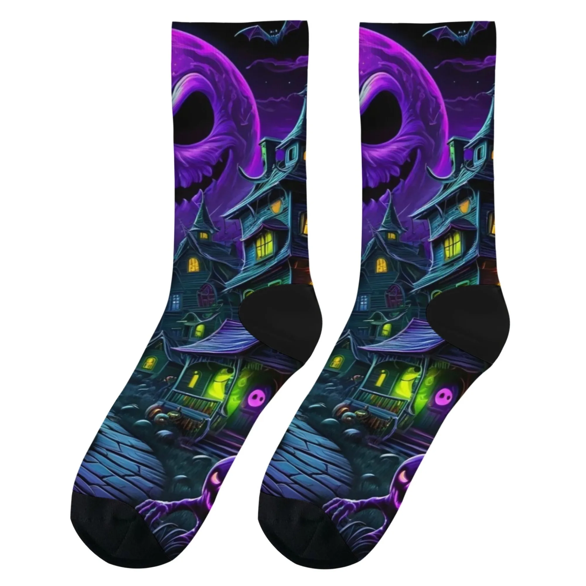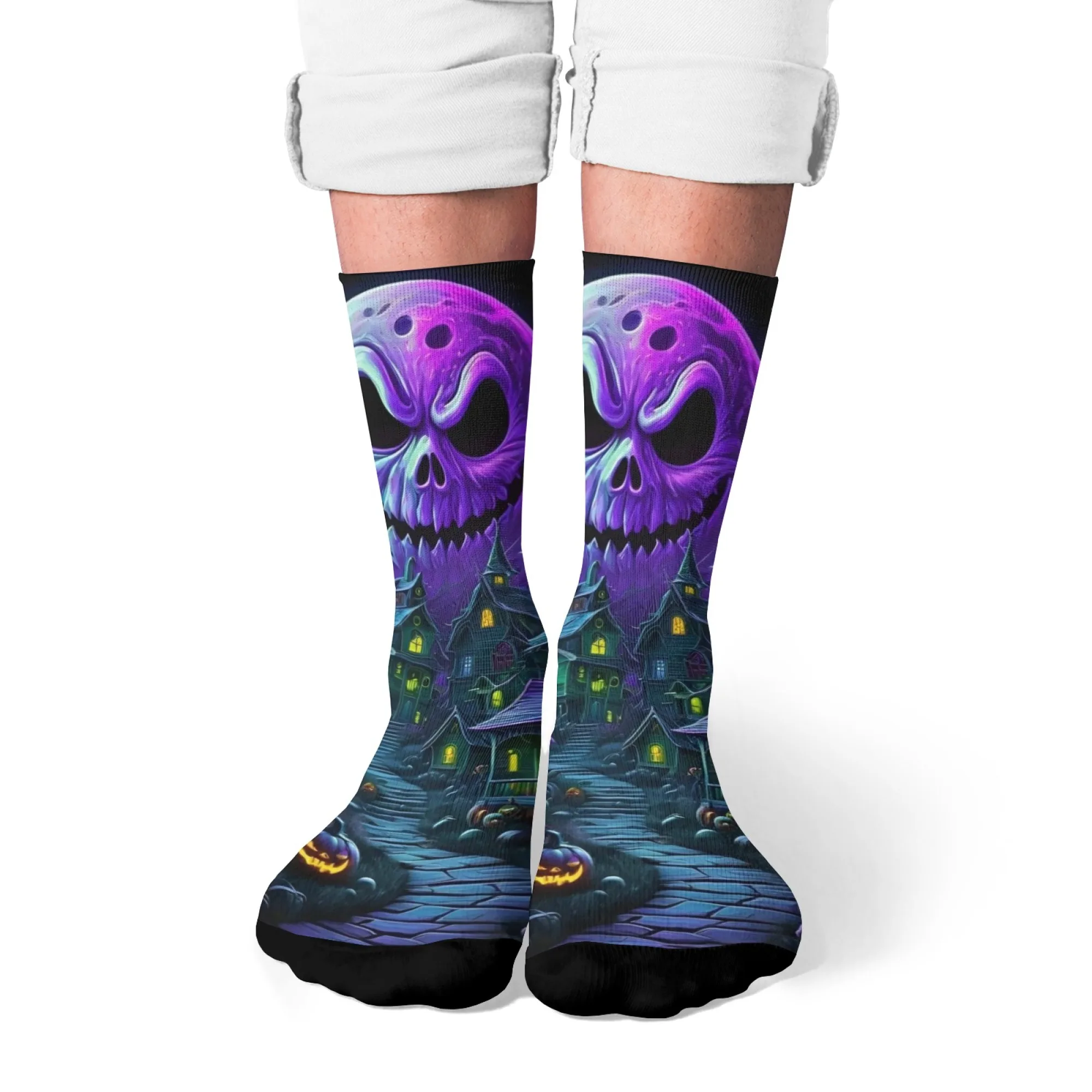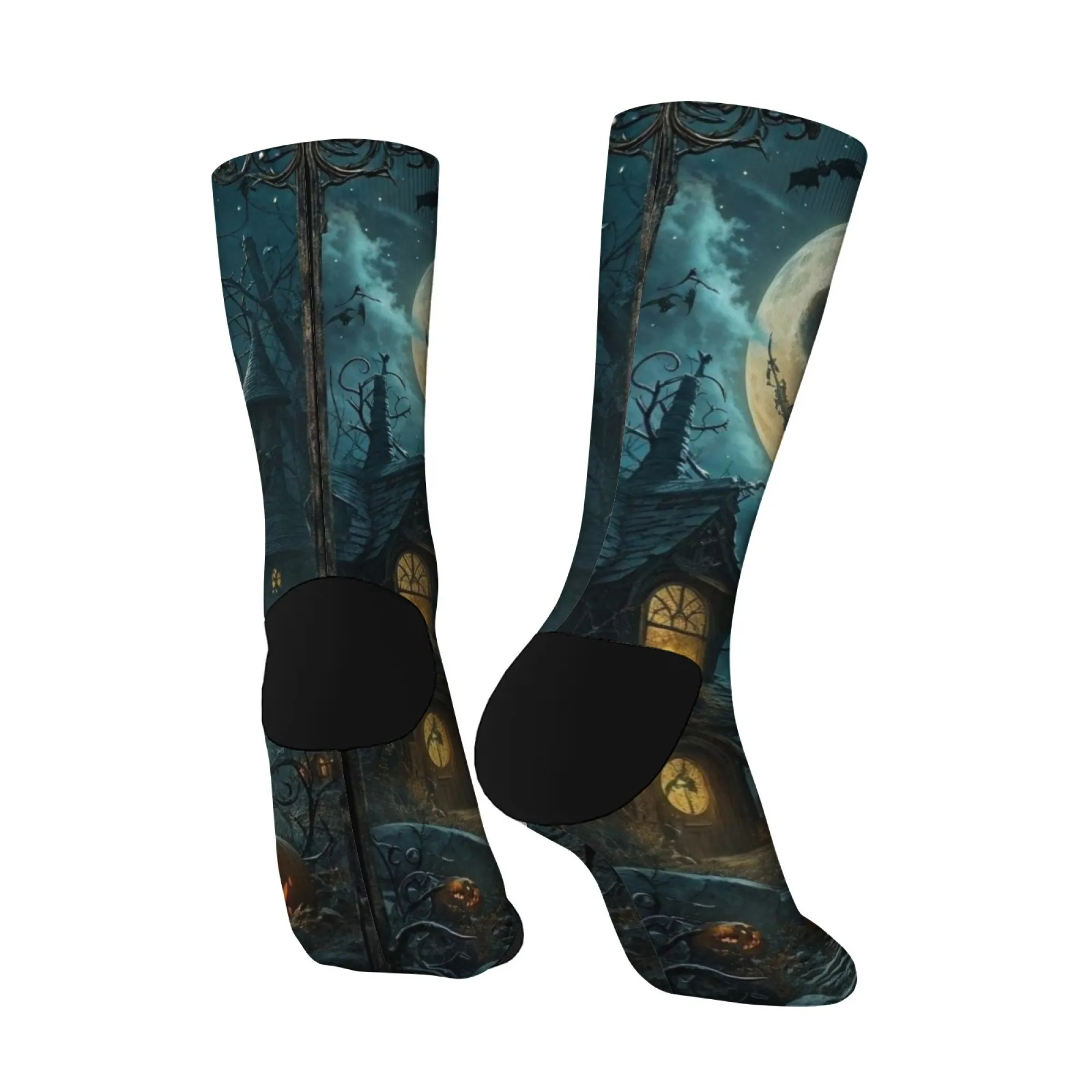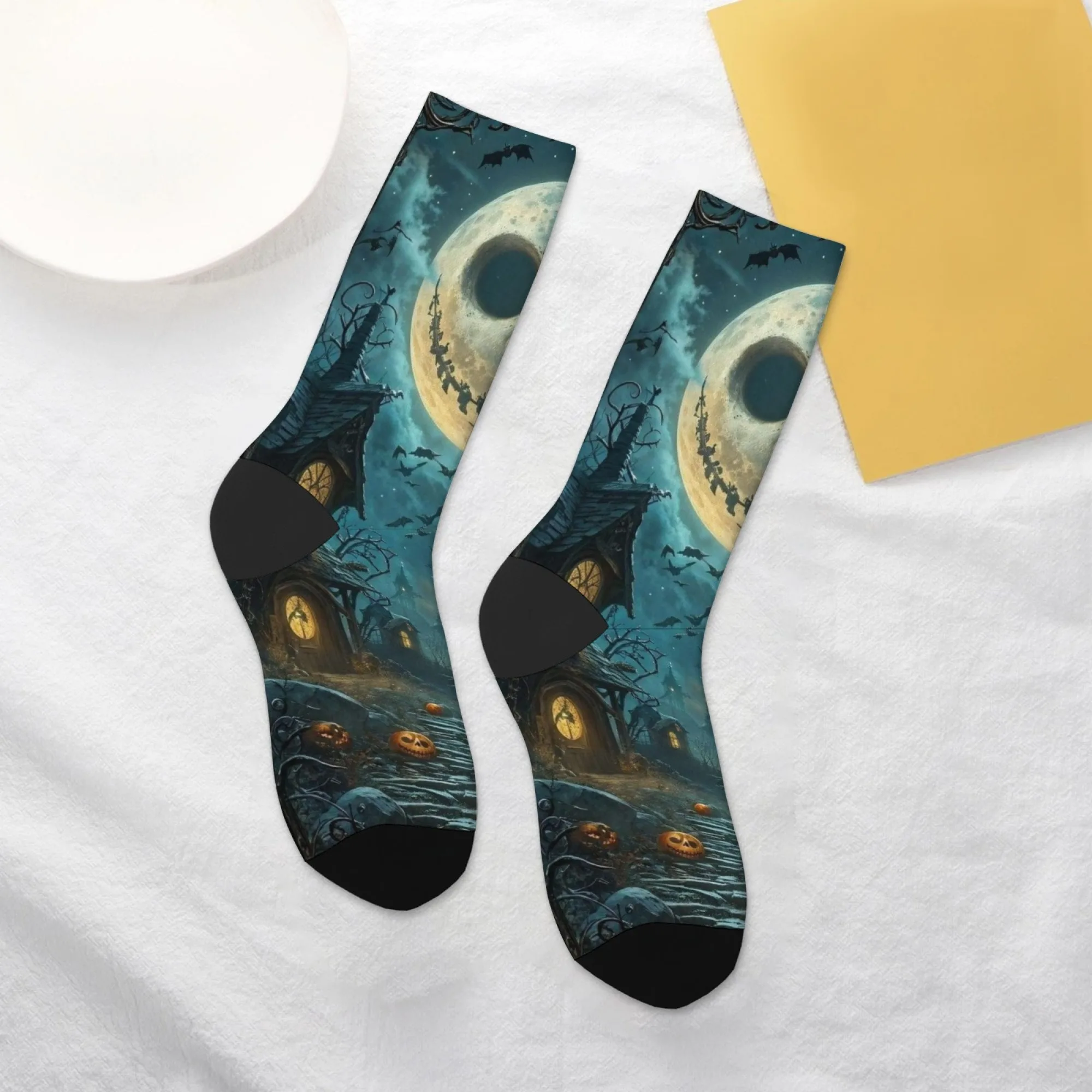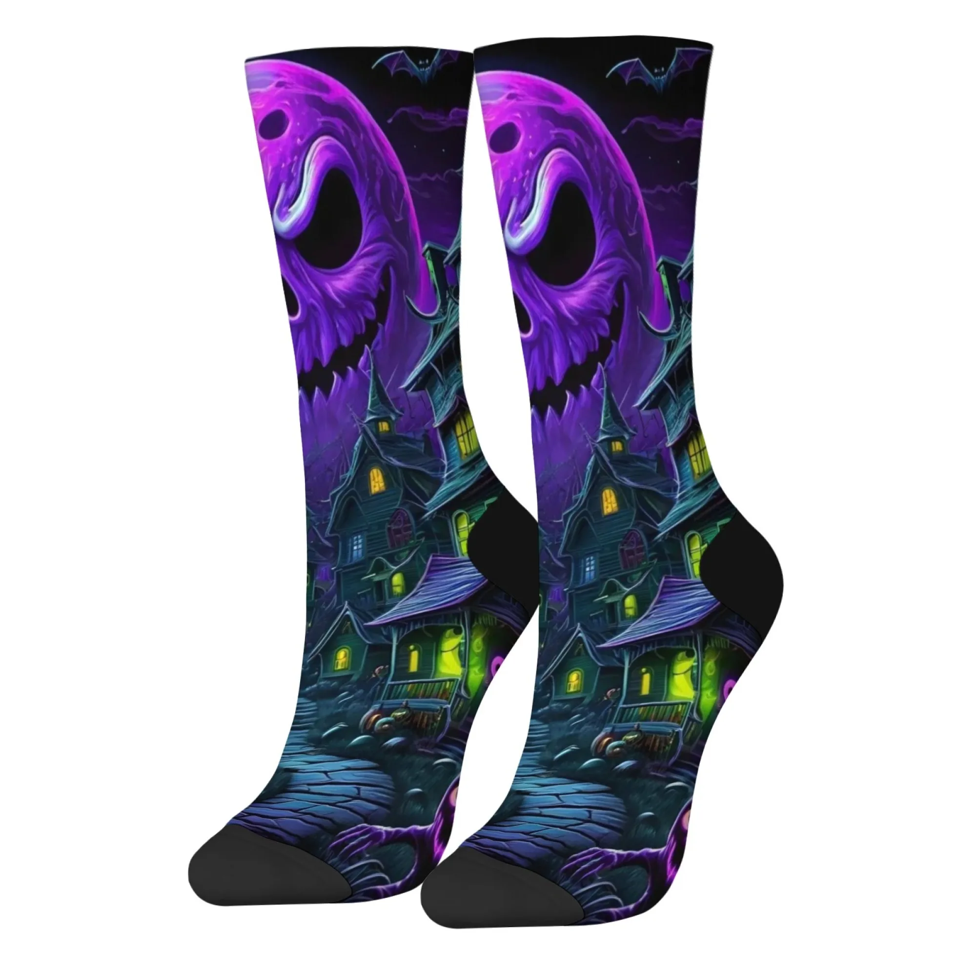 Horror lua abóbora impressão tripulação meias novidade harajuku tendência de rua engraçado hip hop meias de compressão unisex festa presente de halloween