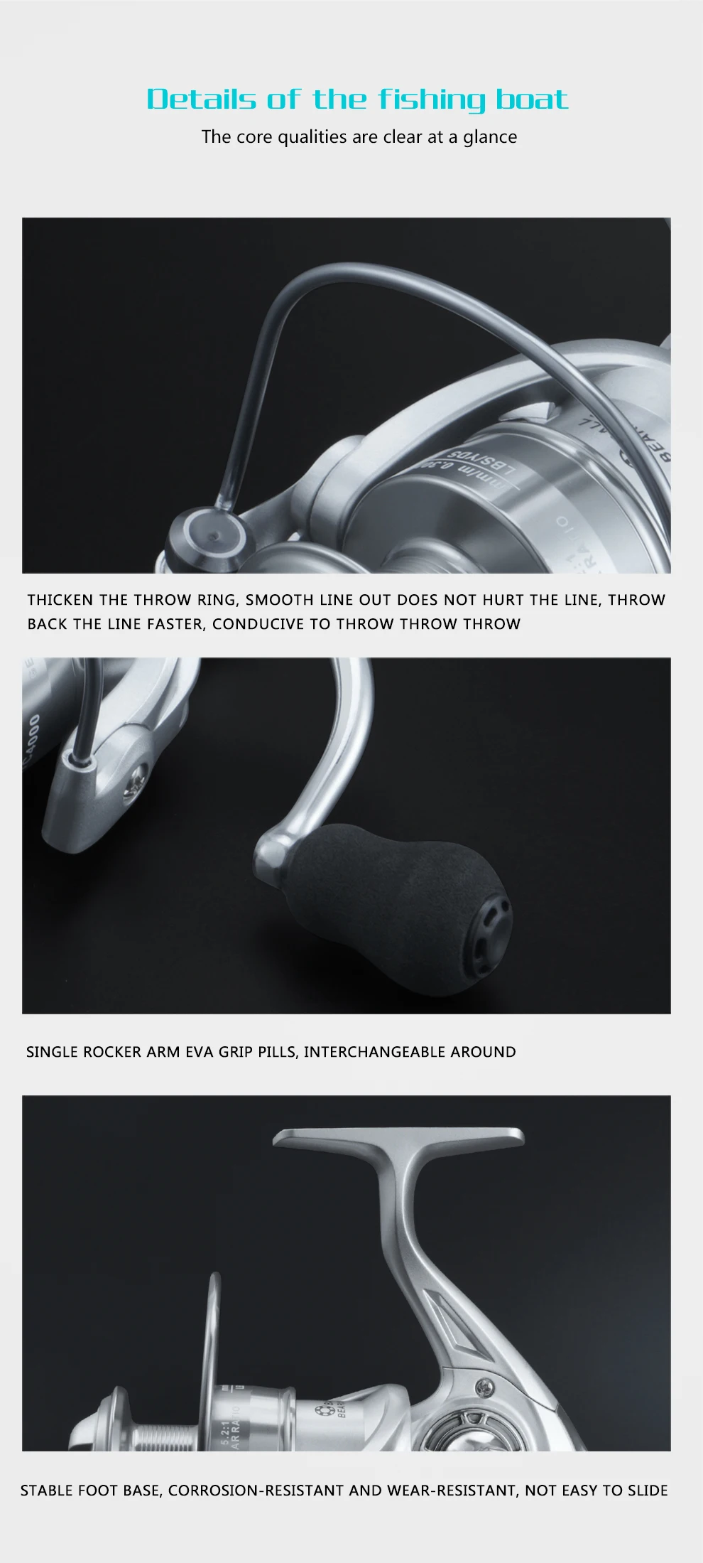 Fabricado a partir de um bloco sólido de metal para resistência e alavancagem inabaláveis.Esta construção robusta proporciona a confiança necessária para aplicar pressão máxima durante batalhas intensas.Apresenta um design reversível que pode ser alternado instantaneamente para acomodar facilmente pescadores canhotos e destros.