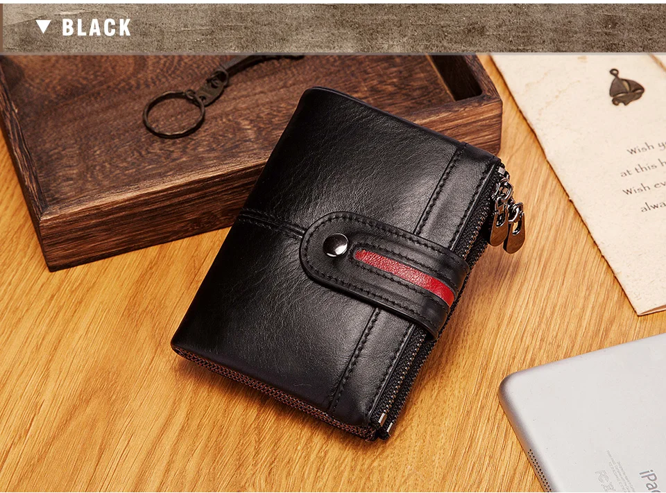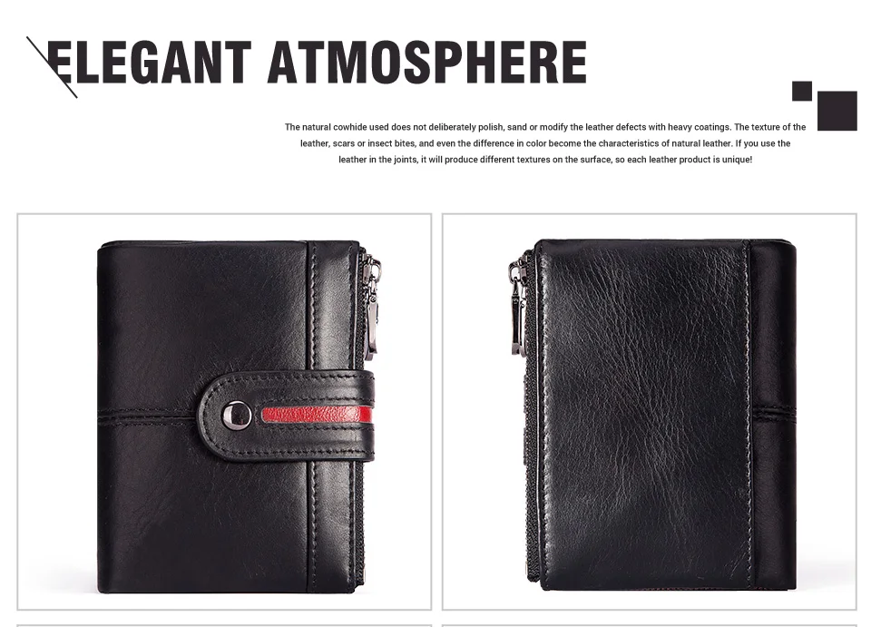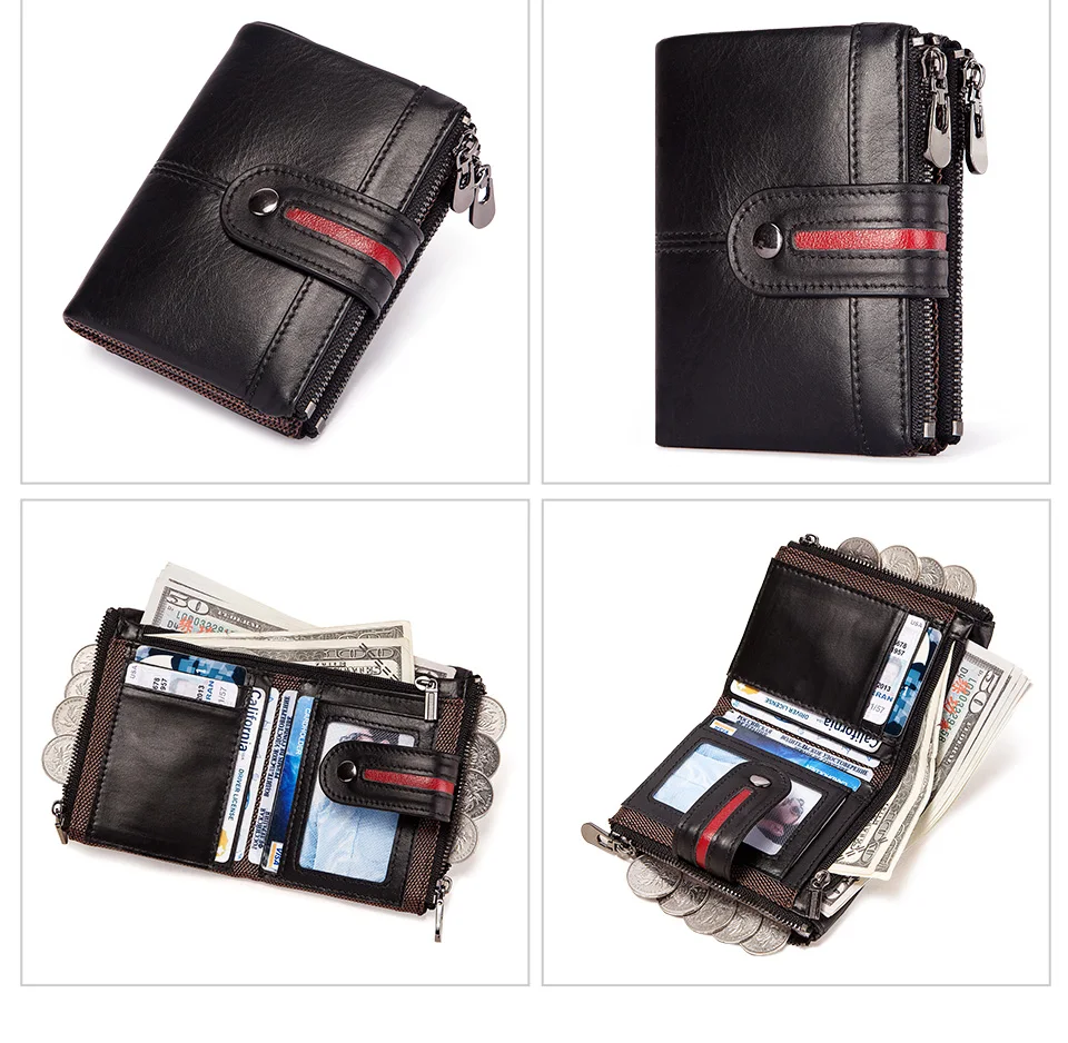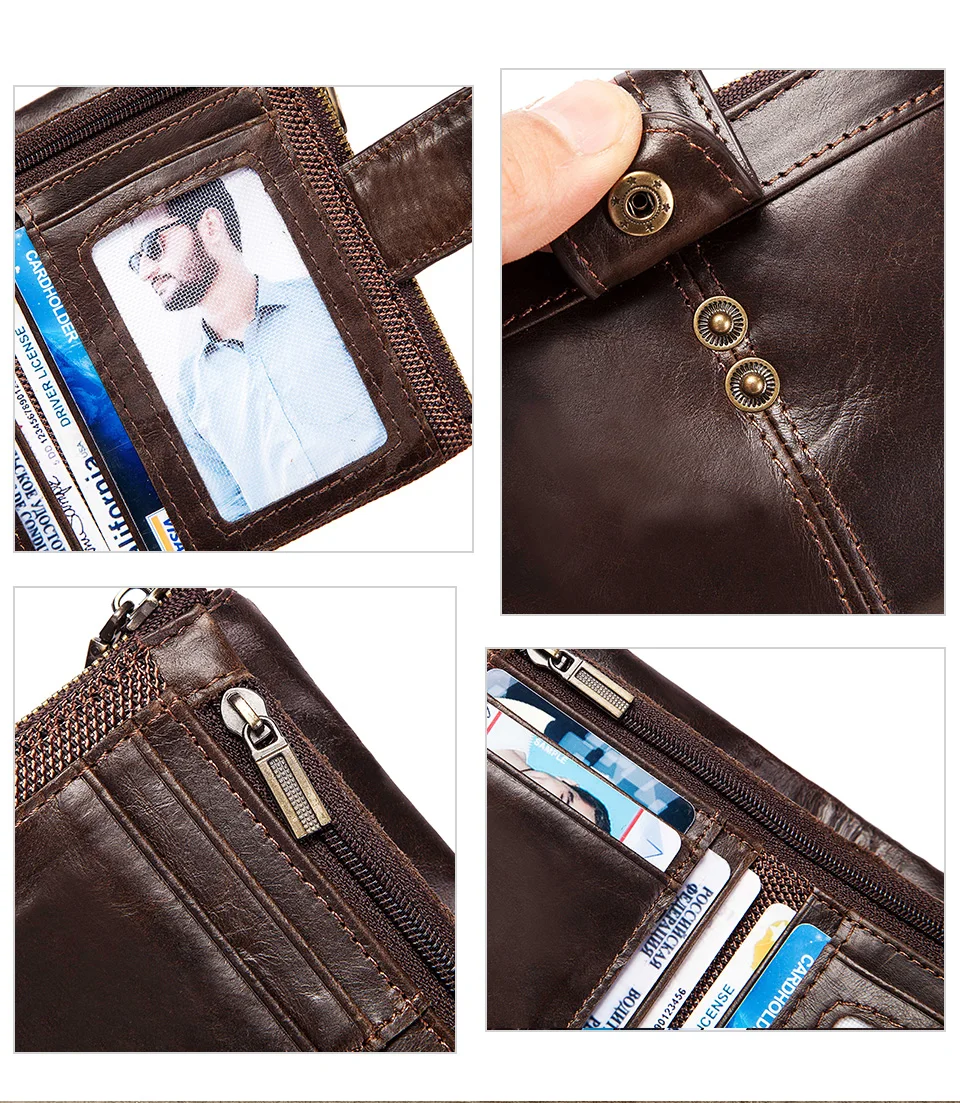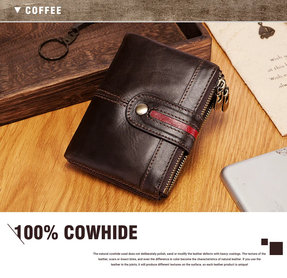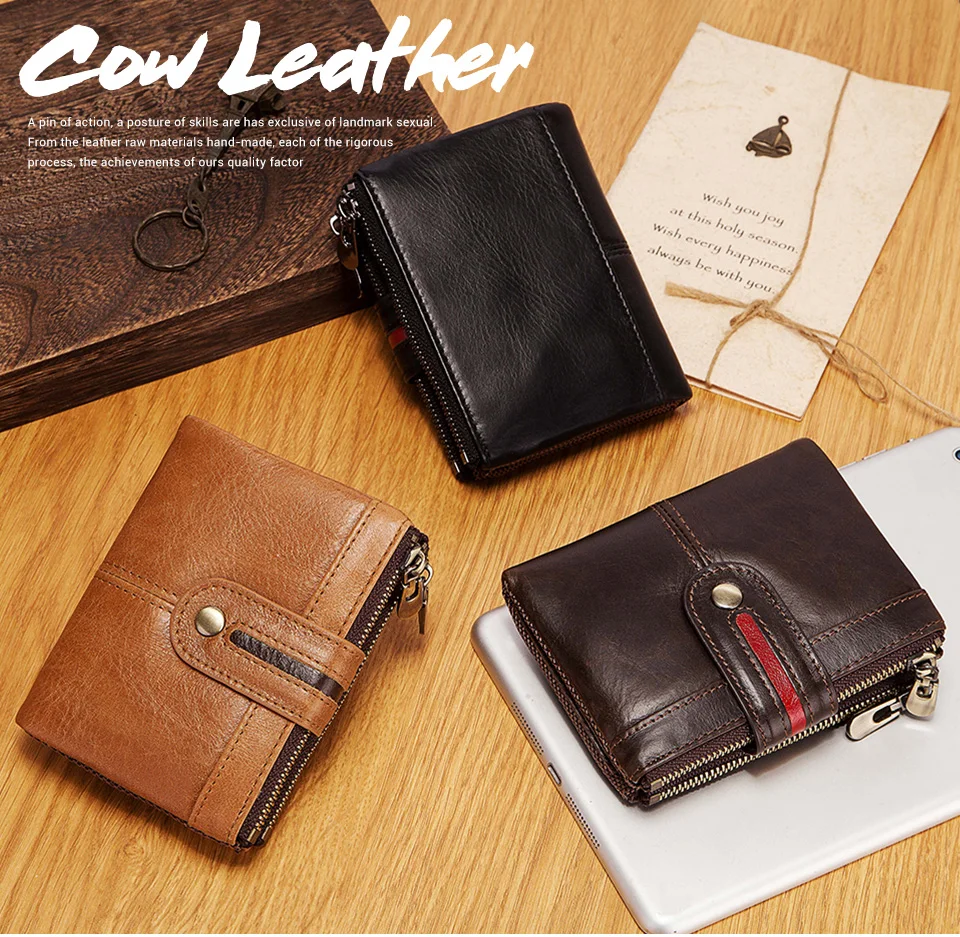 - > HUMERPAUL-Carteira casual masculina, 100% couro genuíno, bloqueio RFID, suporte de cartão de crédito com zíper, bolso curto para moedas, bolsa de embreagem masculina