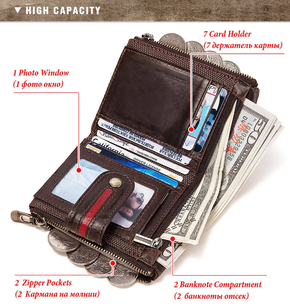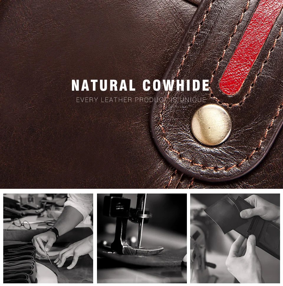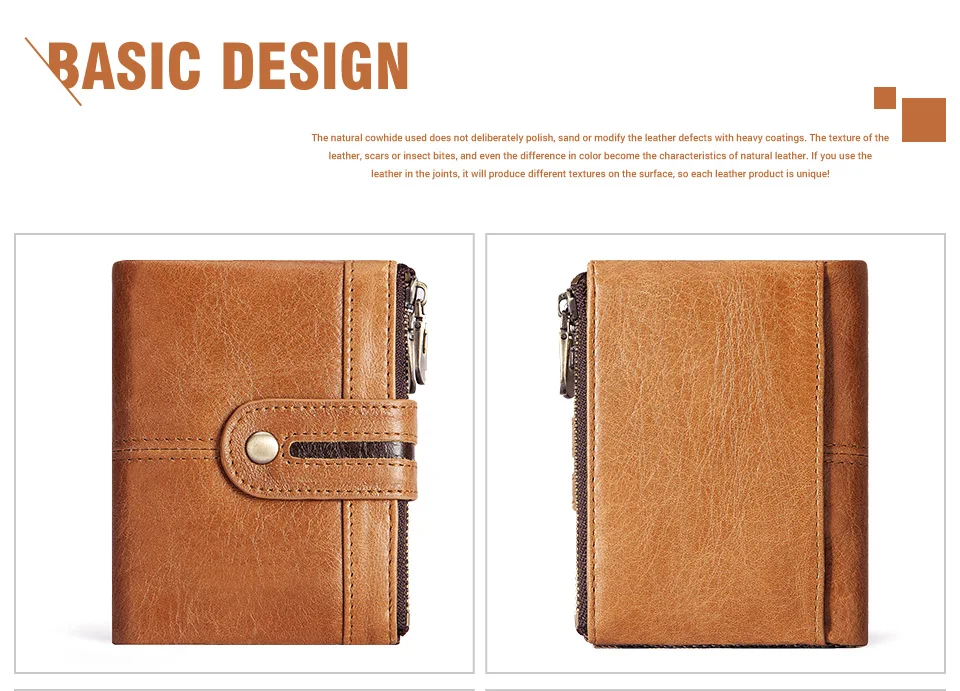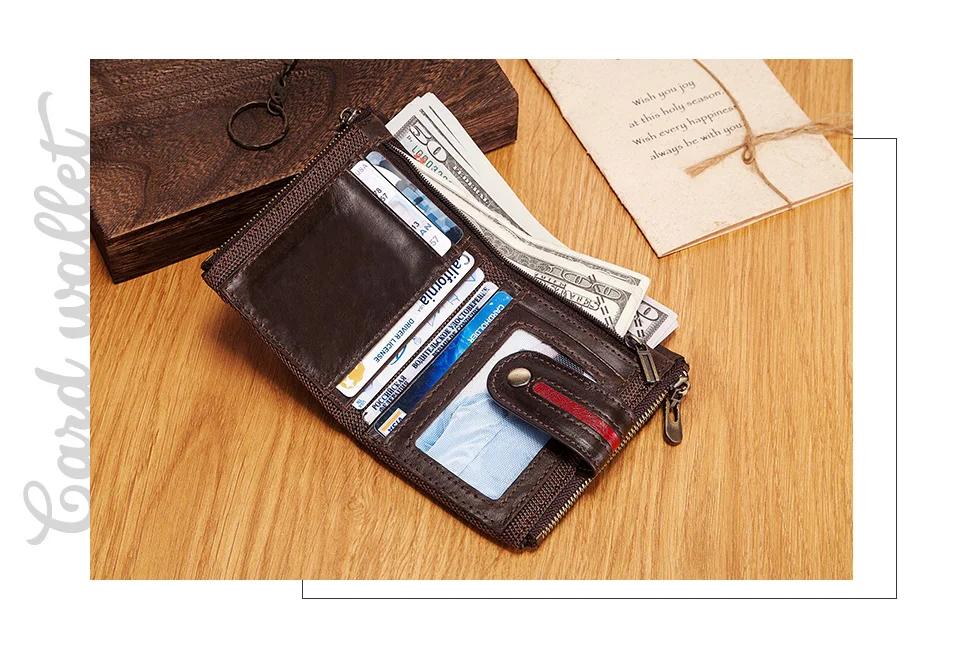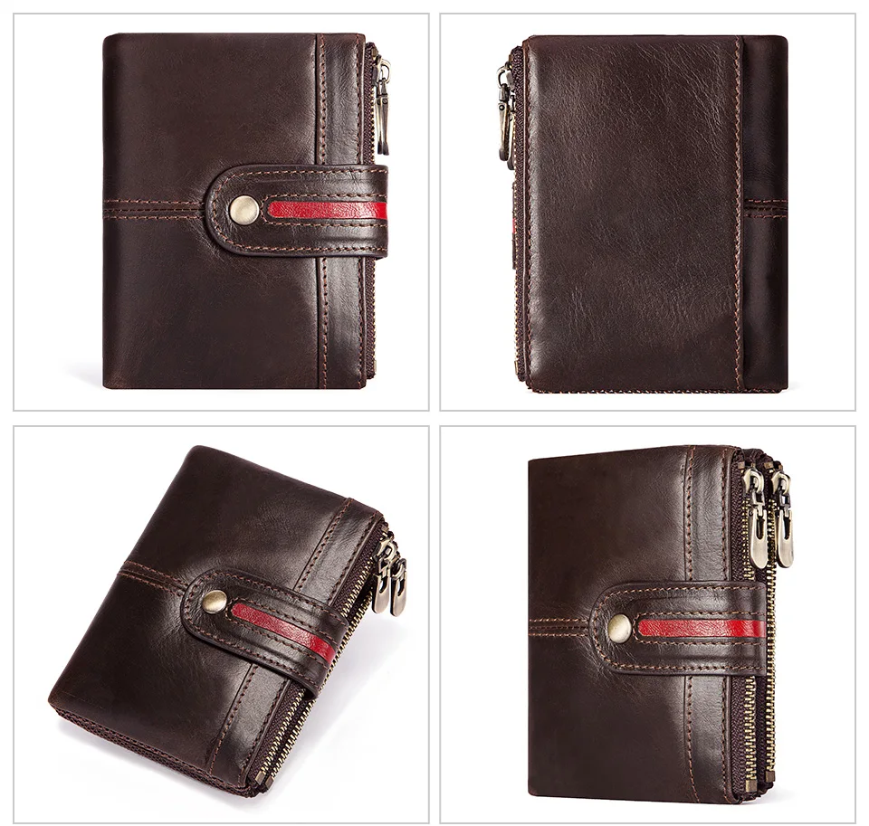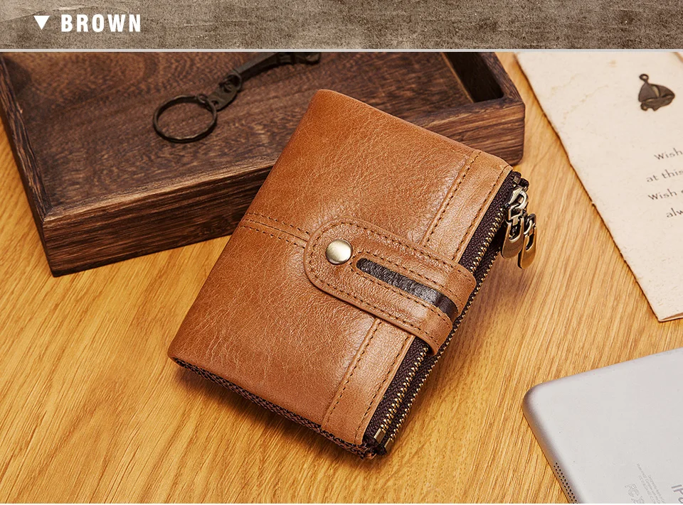 - > HUMERPAUL-Carteira casual masculina, 100% couro genuíno, bloqueio RFID, suporte de cartão de crédito com zíper, bolso curto para moedas, bolsa de embreagem masculina