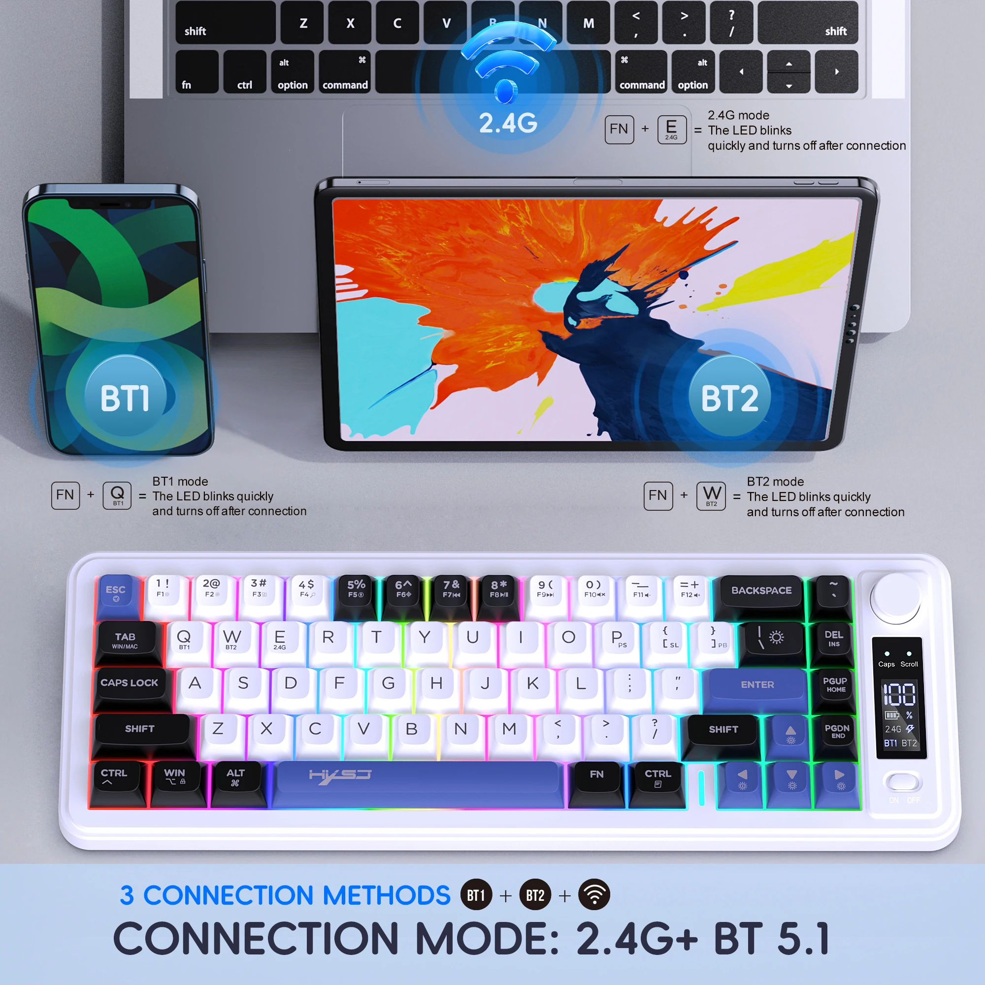 - > HXSJ L68 Teclado para jogos sem fio de 81 teclas e 3 modos silencioso com iluminação arco-íris teclado de membrana sem fio compacto e ergonômico para pc