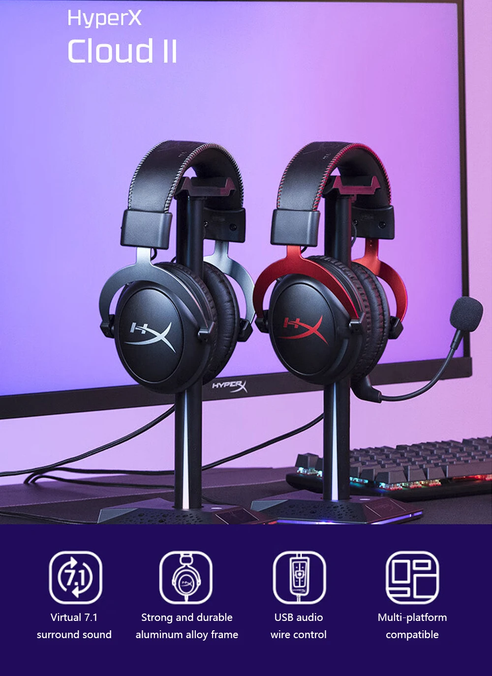 - > Hyperx cloud ii fone de ouvido para jogos hi-fi 7.1 som surround/microfone destacável/placa de som usb para pc ps cloud 2 fone de ouvido para jogos com fio