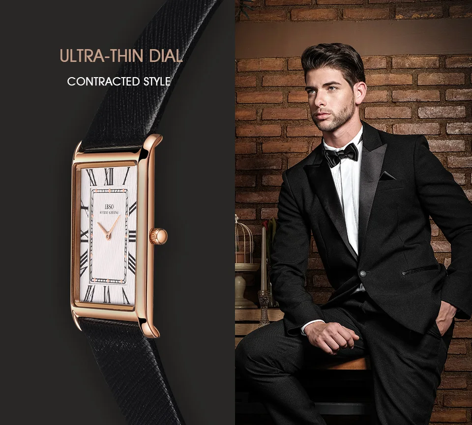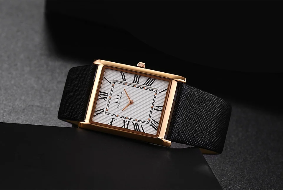 - > IBSO-Relógio ultrafino de quartzo com mostrador retangular masculino, estilo comercial de luxo, pulseira de couro genuíno, relógios de pulso impermeáveis, novos