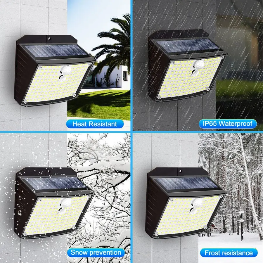 Impermeável sem fio Movimento Sensor Segurança Luzes, Solar Lâmpada de parede, luzes ao ar livre, 3 Modos, Jardim Cerca, Quintal, Deck, Garagem, 158 LED