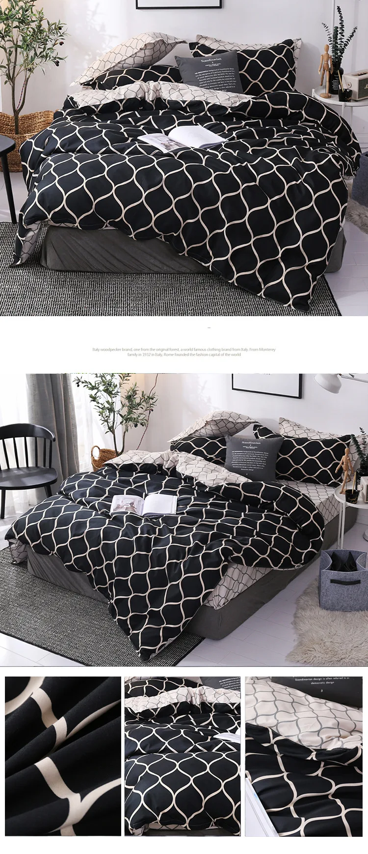Impresso branco preto capa de edredão rei rainha tamanho colcha capa e fronha 3 pçs consolador conjuntos cama