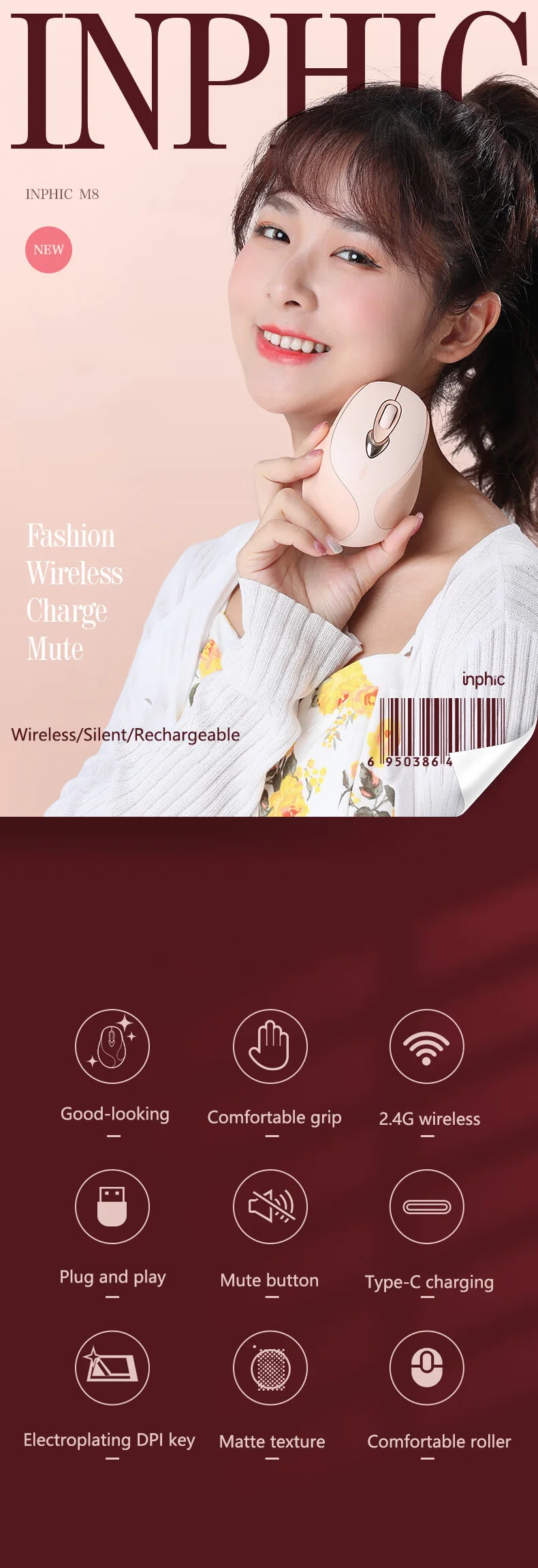 - > Inphic M8 Mouse Sem Fio Ergonômico Escritório Silencioso Mouse TYPE-C Carregamento Pequeno e Leve Adequado para Laptops e Desktops