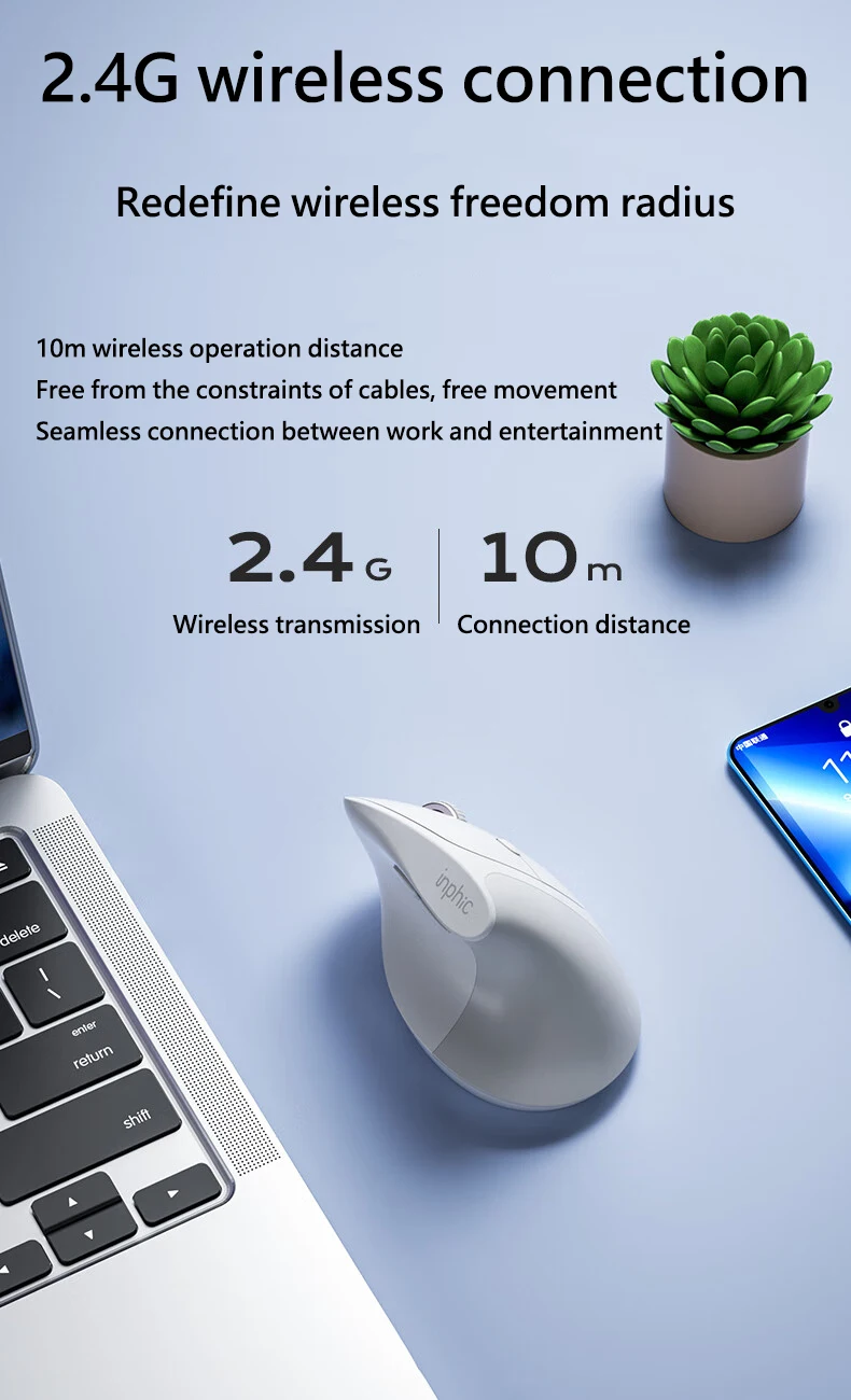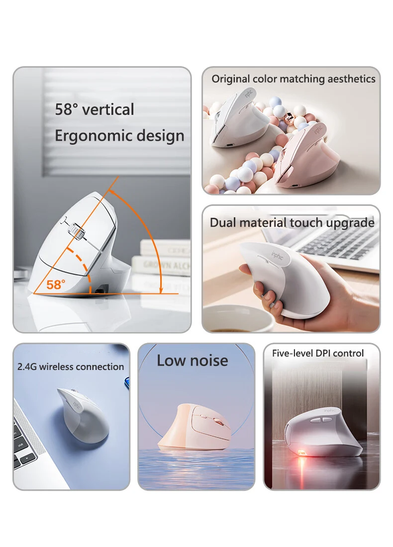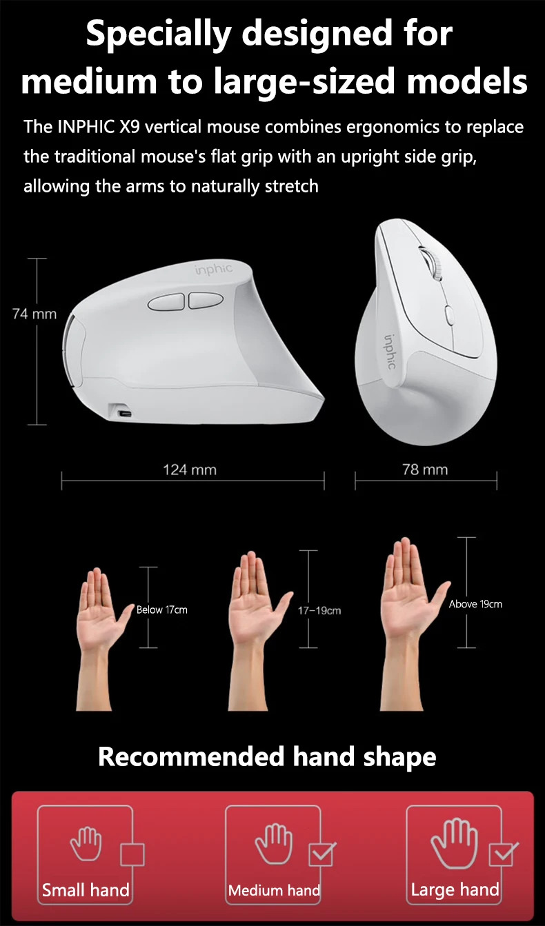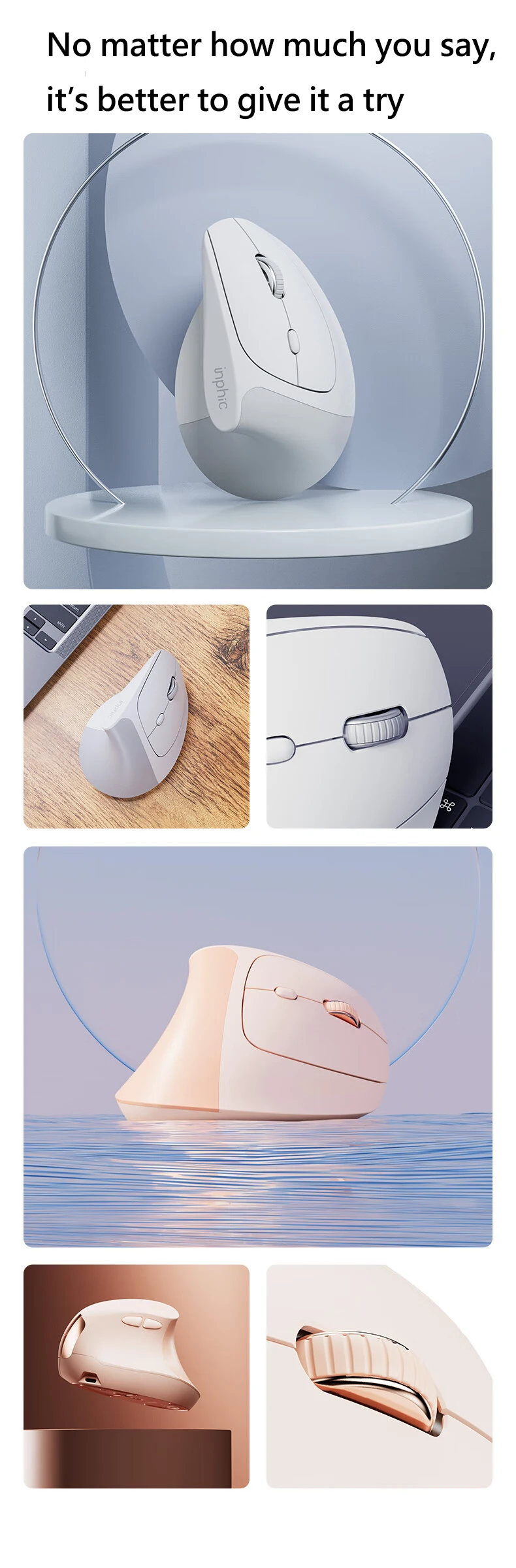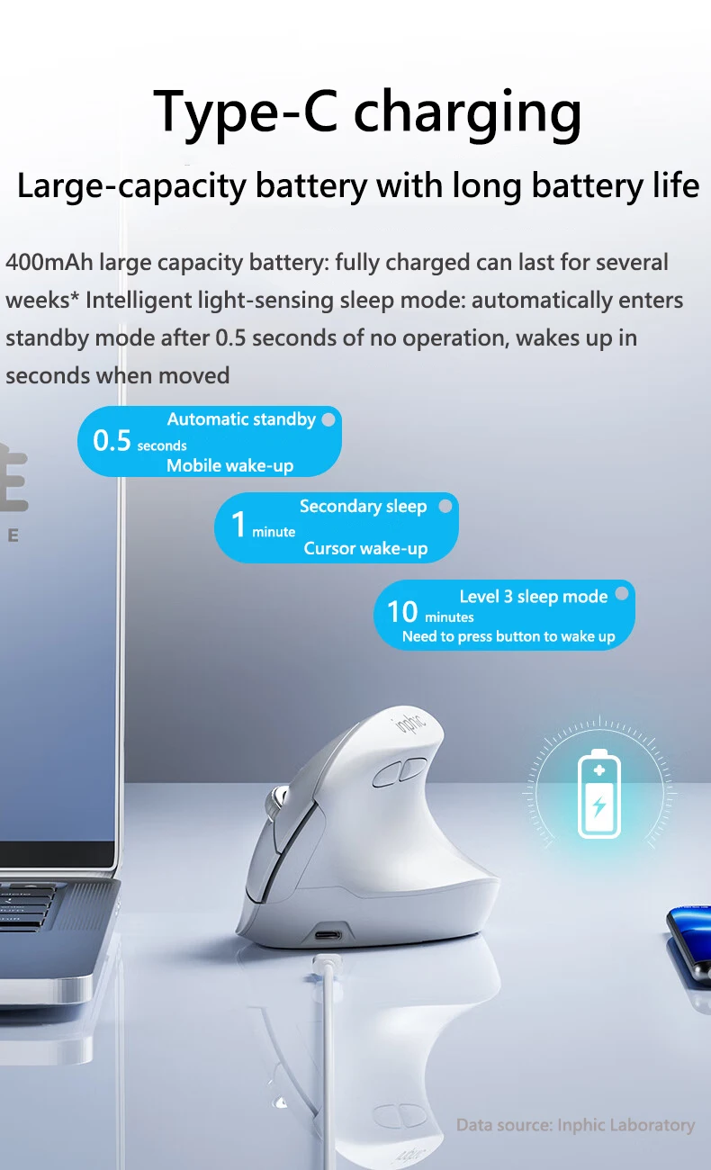 - > Inphic x9 mouse vertical sem fio tipo-c carregamento rápido ergonômico silencioso mouse de escritório para laptop desktop computador casa