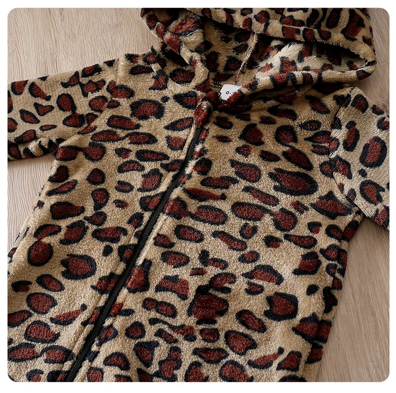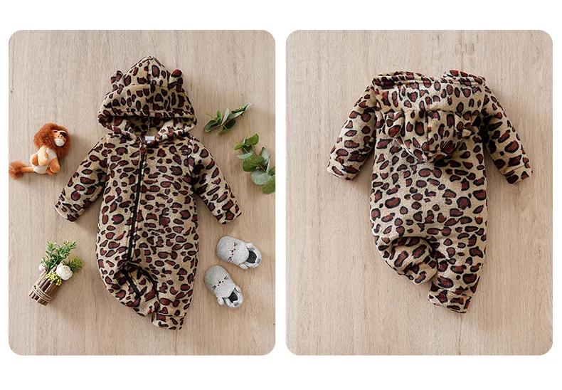Inverno bebê manga longa com capuz macacão 0-18 meses meninos e meninas bebê quente e aconchegante, grosso leopardo impressão 2025 roupas de bebê recém-nascido
