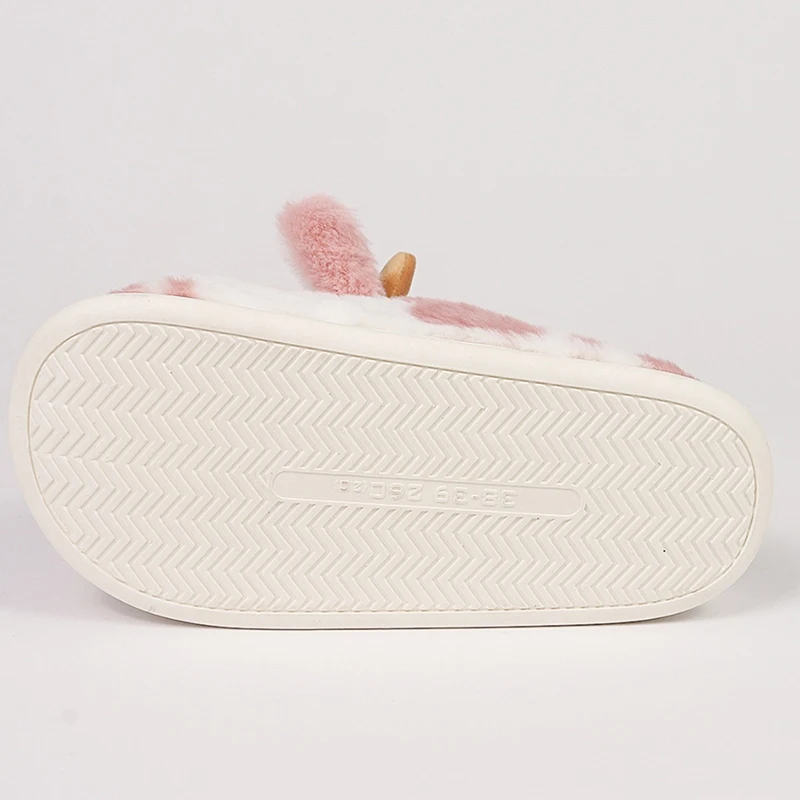 Inverno feminino quente dos desenhos animados chinelos de vaca dedo do pé fechado antiderrapante peludo casa sapatos feminino quarto interior sola grossa chinelos de pelúcia