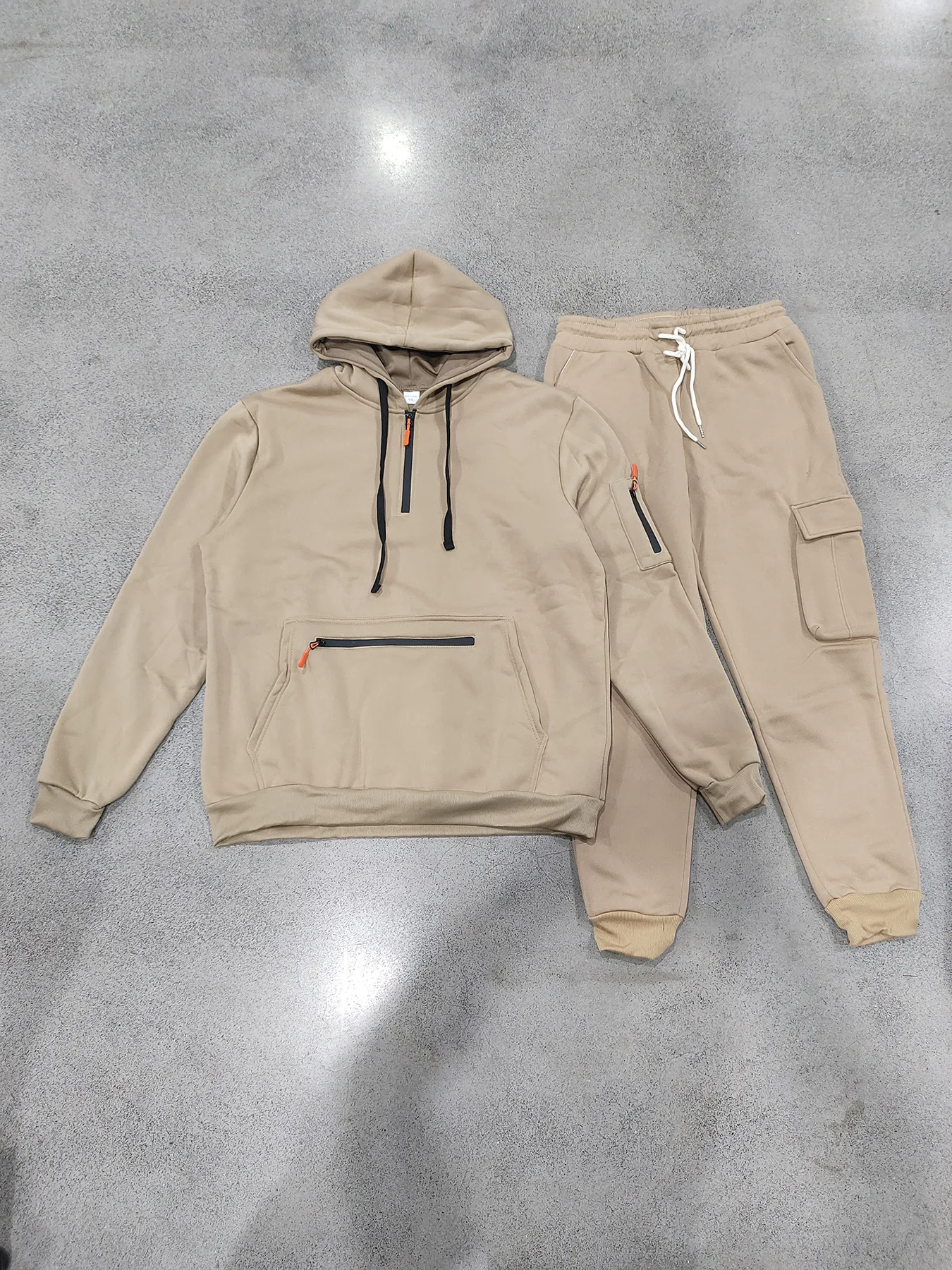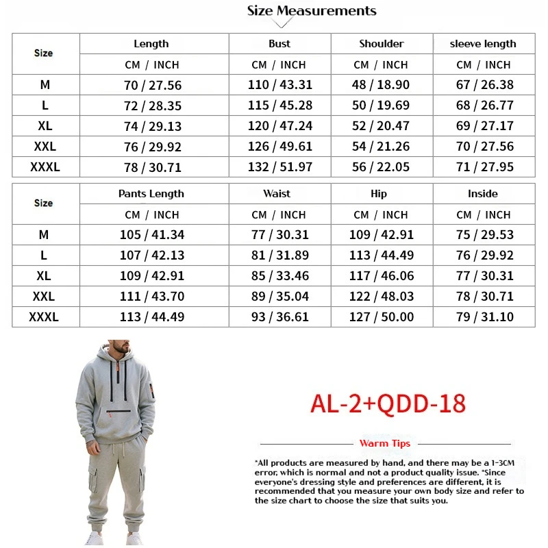 Inverno quente masculino de pelúcia grosso casual terno esportivo, multi bolso workwear outono e inverno quente hoodie e calças conjunto de duas peças