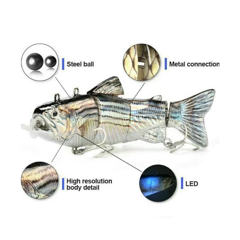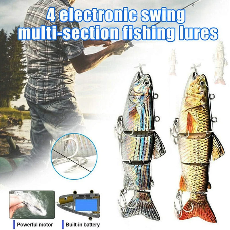 Isca de pesca robótica elétrica automática, isca multiarticulada automática de 4 segmentos, recarregável por usb, acessórios de pesca wobbler