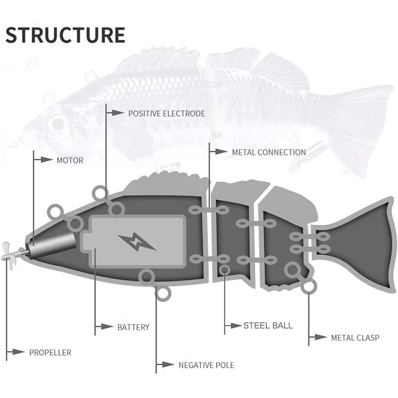 Qualidade: a isca de pesca automática é uma isca de pesca mecanizada e automotória, para que possa nadar como um peixe real por meio de programação eletrônica.