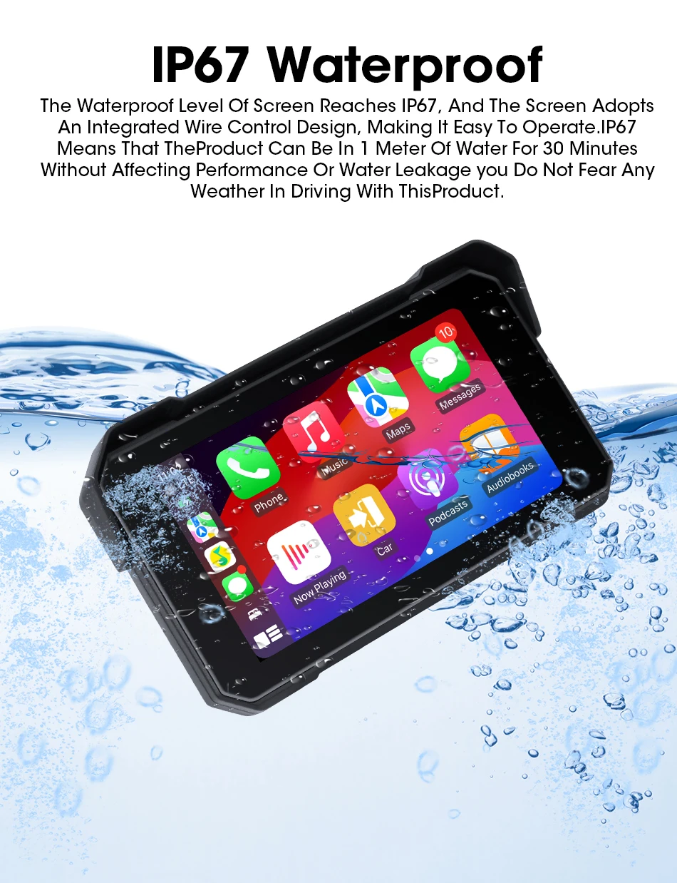 - > Jansite tela de exibição da motocicleta carplay moto navegação portátil painel digital motobike android auto à prova dwaterproof água monitor bt
