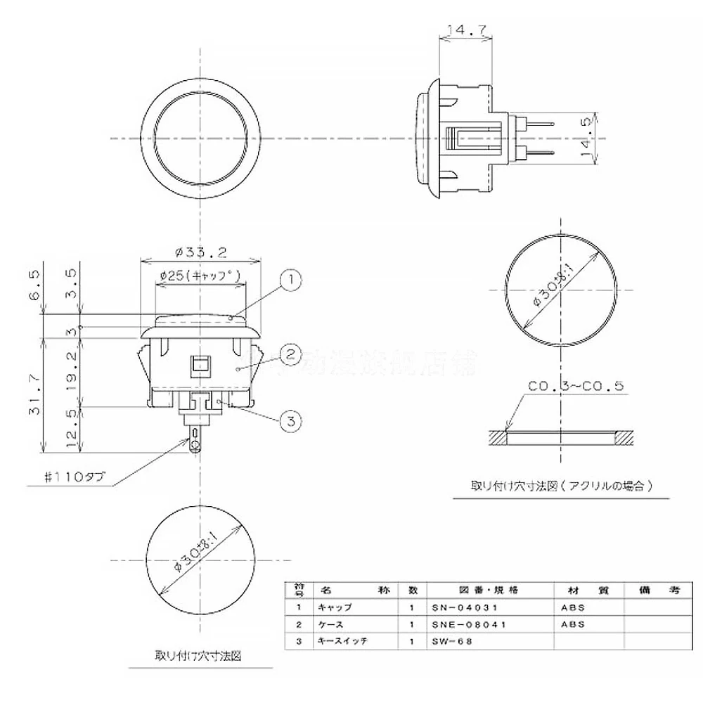 Especificações dos botões: 24 mm e 30 mm referem-se ao tamanho do diâmetro do furo circular do painel de controle do console de jogos, não ao diâmetro máximo do botão.