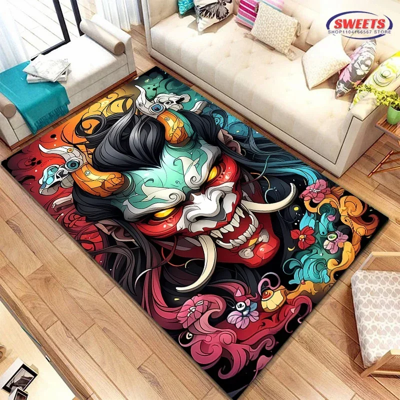 Japonês hannya máscara impressão 3d tapete para sala de estar quarto corredor tira longa tapete antiderrapante área macia sofá capacho casa