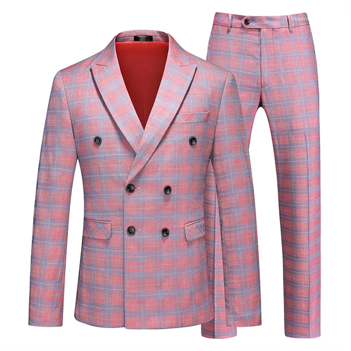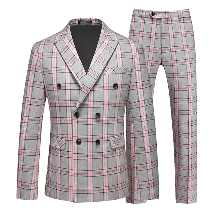 (Jaqueta + calças) masculino duplo breasted ternos de casamento 2025 novo masculino formal gola xadrez vestido conjunto