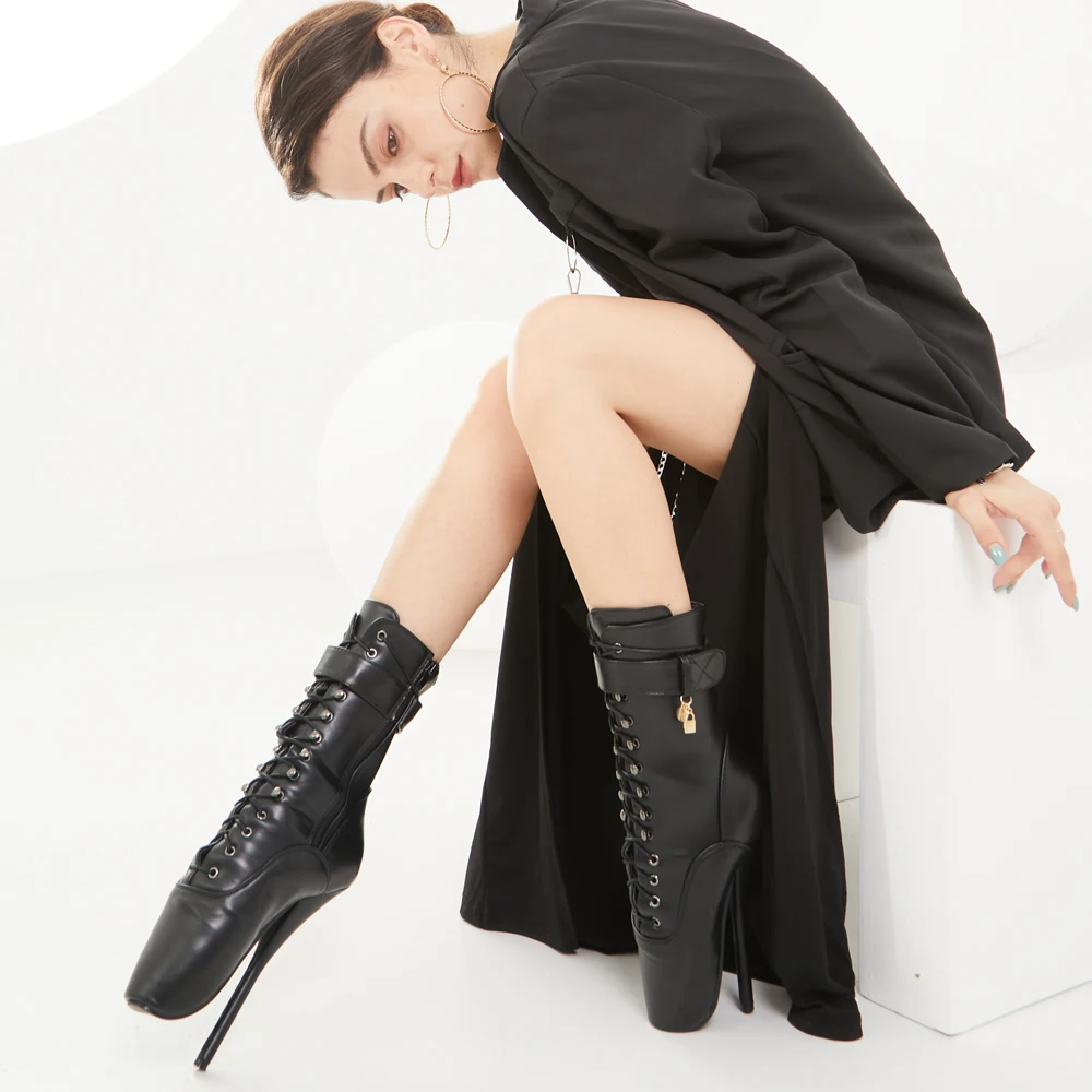 - > JIALUOWEI 7 Polegada salto alto extremo fetiche gótico ballet rendas tornozelo botas Size36-46 transporte rápido