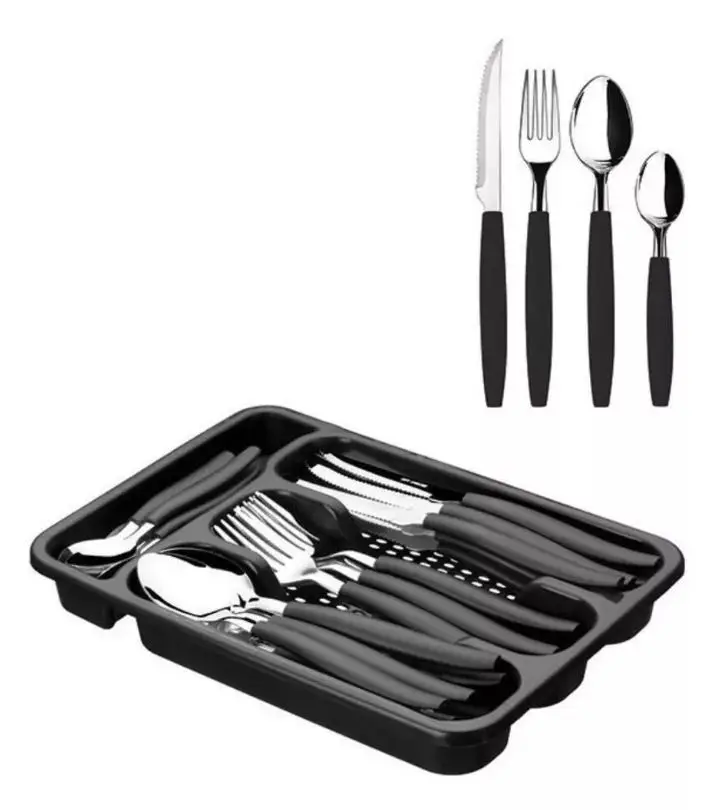 Jogo De Talheres 25 Peças Completo Conjunto Aço Inox + Organizadora Faqueiro Cozinha Gourmet- Entrega Rápida Para Todo o Brasil