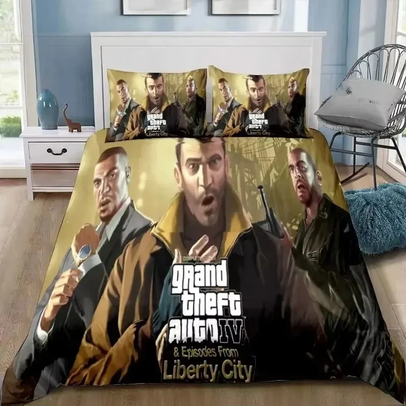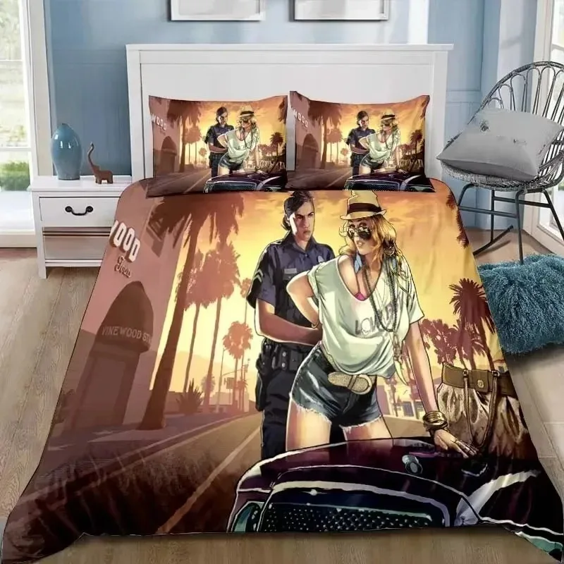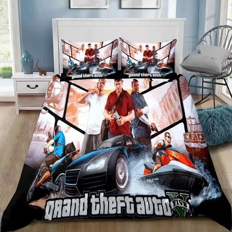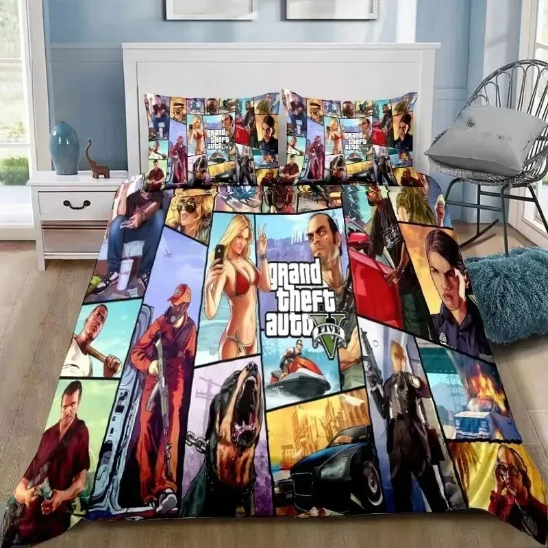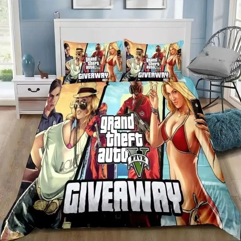 Jogo grand theft auto capa de edredão fronha conjunto cama gta adulto menino menina quarto decoração único duplo tamanho grande