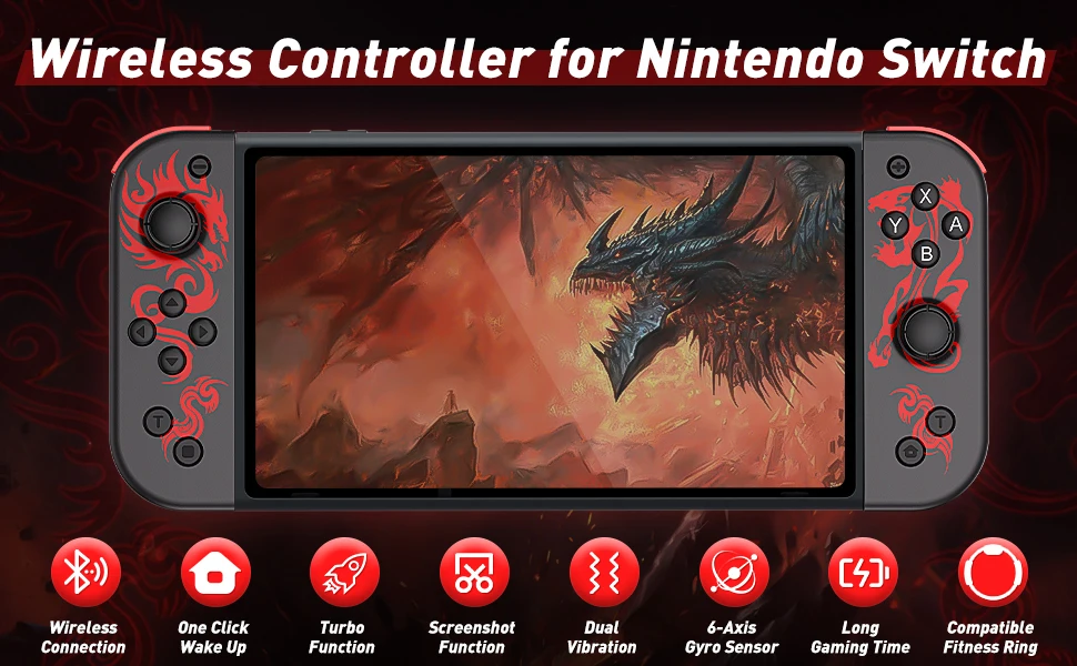 Joypad para nintendo switch-função de despertador de vibração turbo, controlador sem fio de jogo para pc/telefone, gamepad de vídeo, sem alça