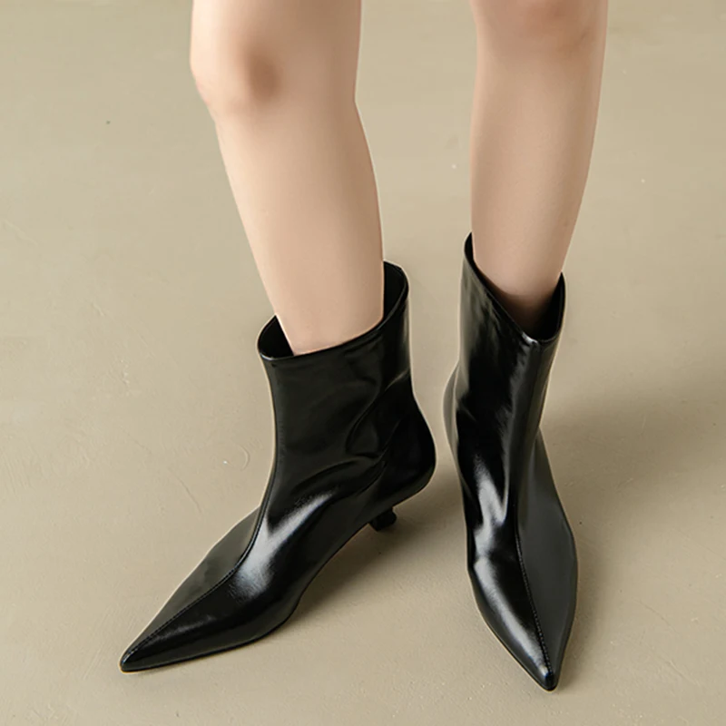 Jozhamta tamanho 34-43 mulheres botas de tornozelo de couro real moda sapatos de salto médio para botas de inverno pontiagudas senhora do escritório sapatos de vestido diário